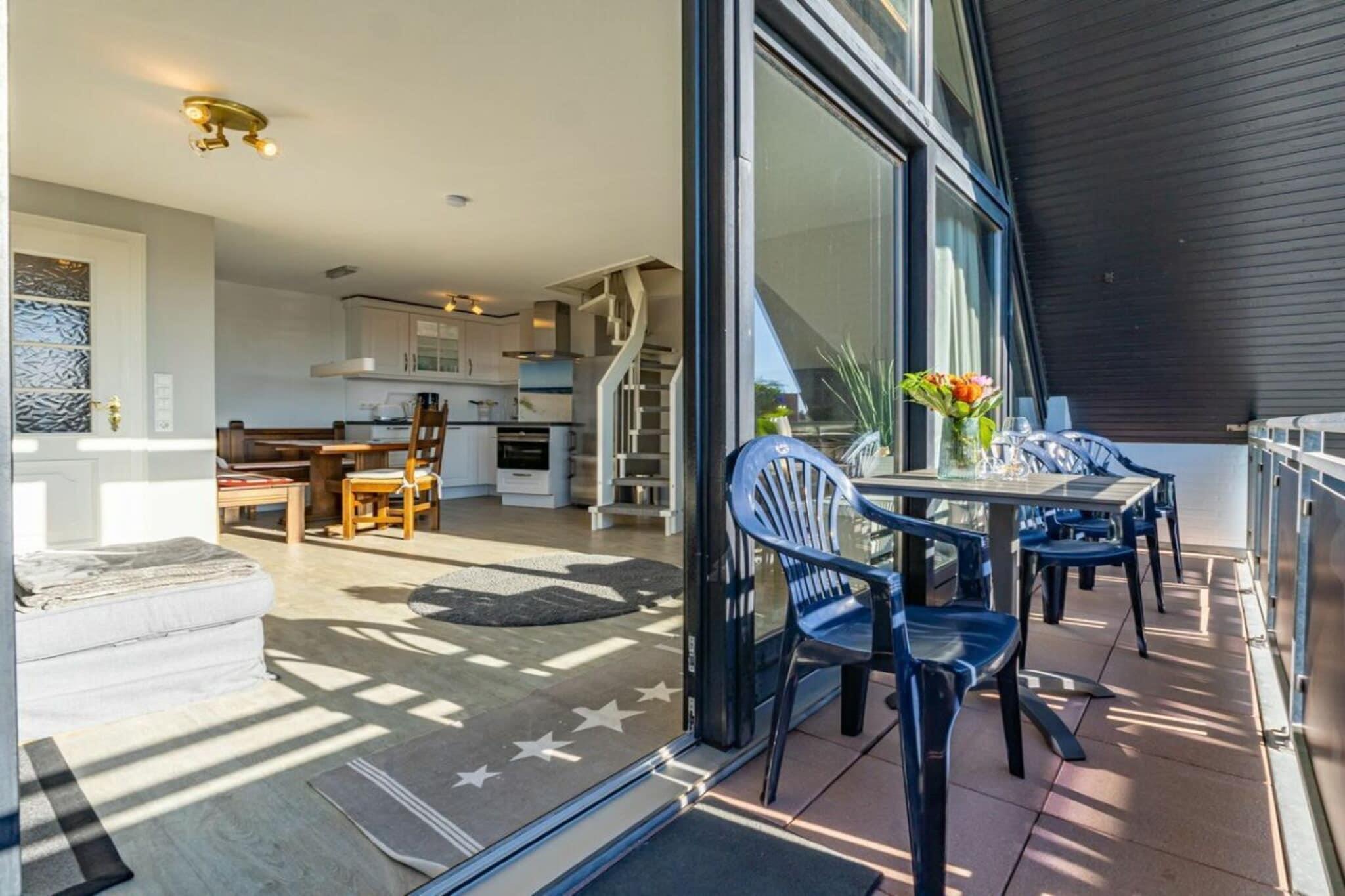 Genießen Sie in der Ferienwohnung Meeresbrise in Wenningstedt einen traumhaften Blick vom großen Balkon.