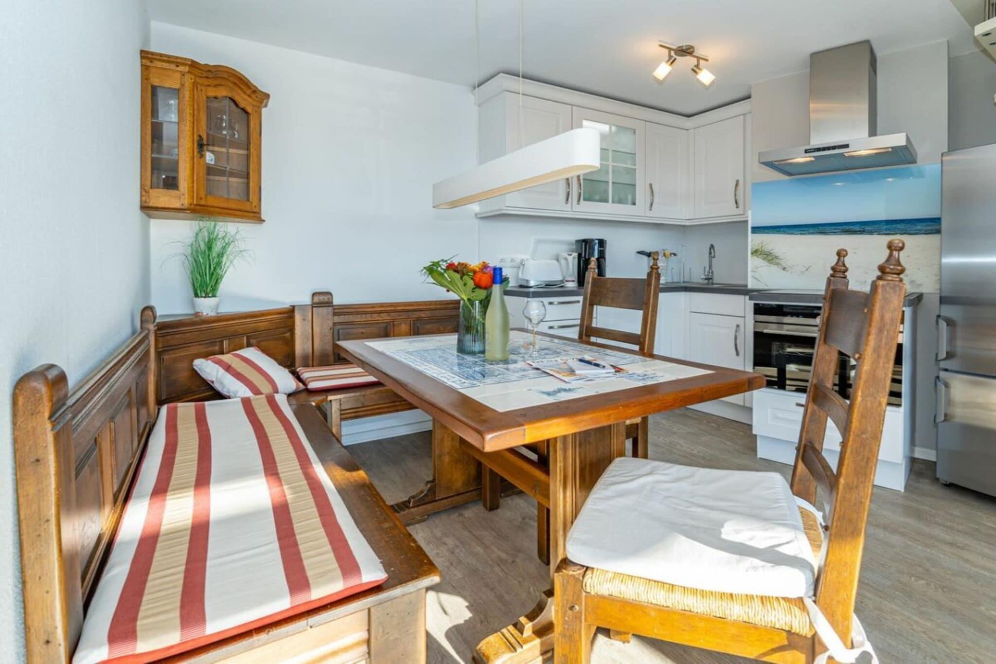 Appartement Meeresbrise Die Wohnung hat einen großzügige Wohn-/Essbereich, 2 Schlafzimmer, geeignet für bis 4 Pers. Vom großen Süd - Balkon genießen sie einen traumhafthaften Blick über die Dächer von Wenningstedt bis zu den Dünen.