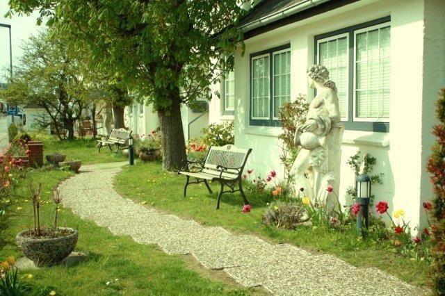 Gepflegter Außenbereich mit vielen bunten Pflanzen. Hinter dem Haus befindet sich der romantische Wenningstedter Dorfteich. Am Haus steht Ihnen ein kostenloser Parkplatz zur Verfügung.