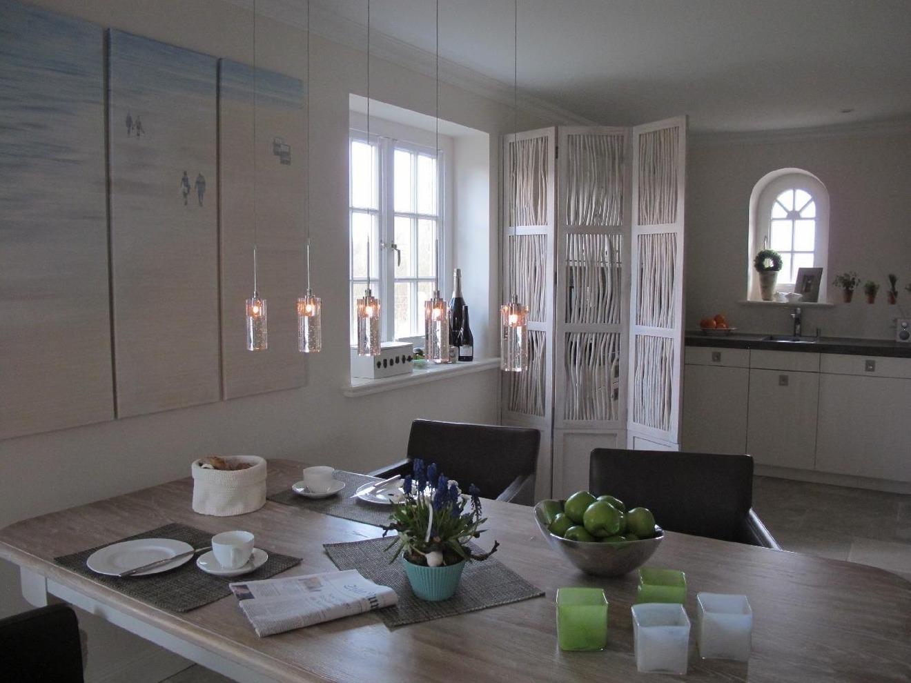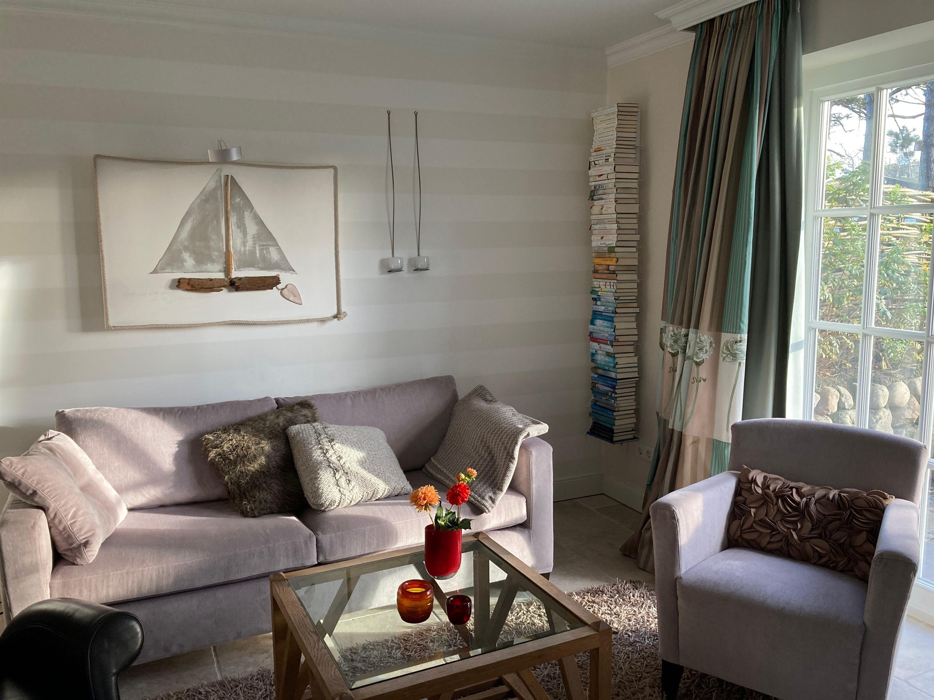 Modern und gemütlich: Großzügige Ferienwohnung mit Gartenterrasse und Blick auf den Kampener Leuchtturm.