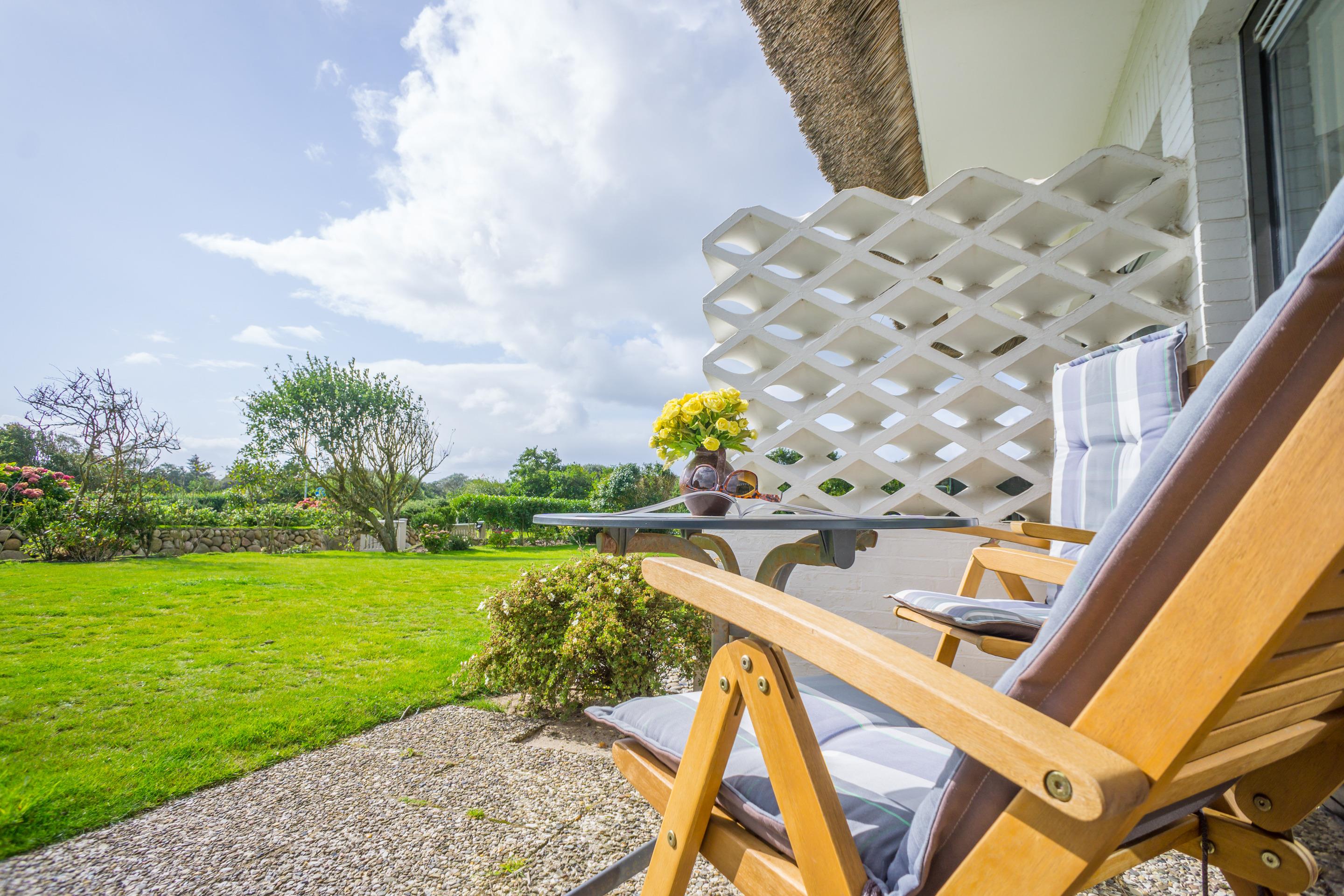 Gemütliche Ferienwohnung am Dorfteich in Wenningstedt mit Terrasse, Garten und Strandkorb für erholsame Tage zu zweit.