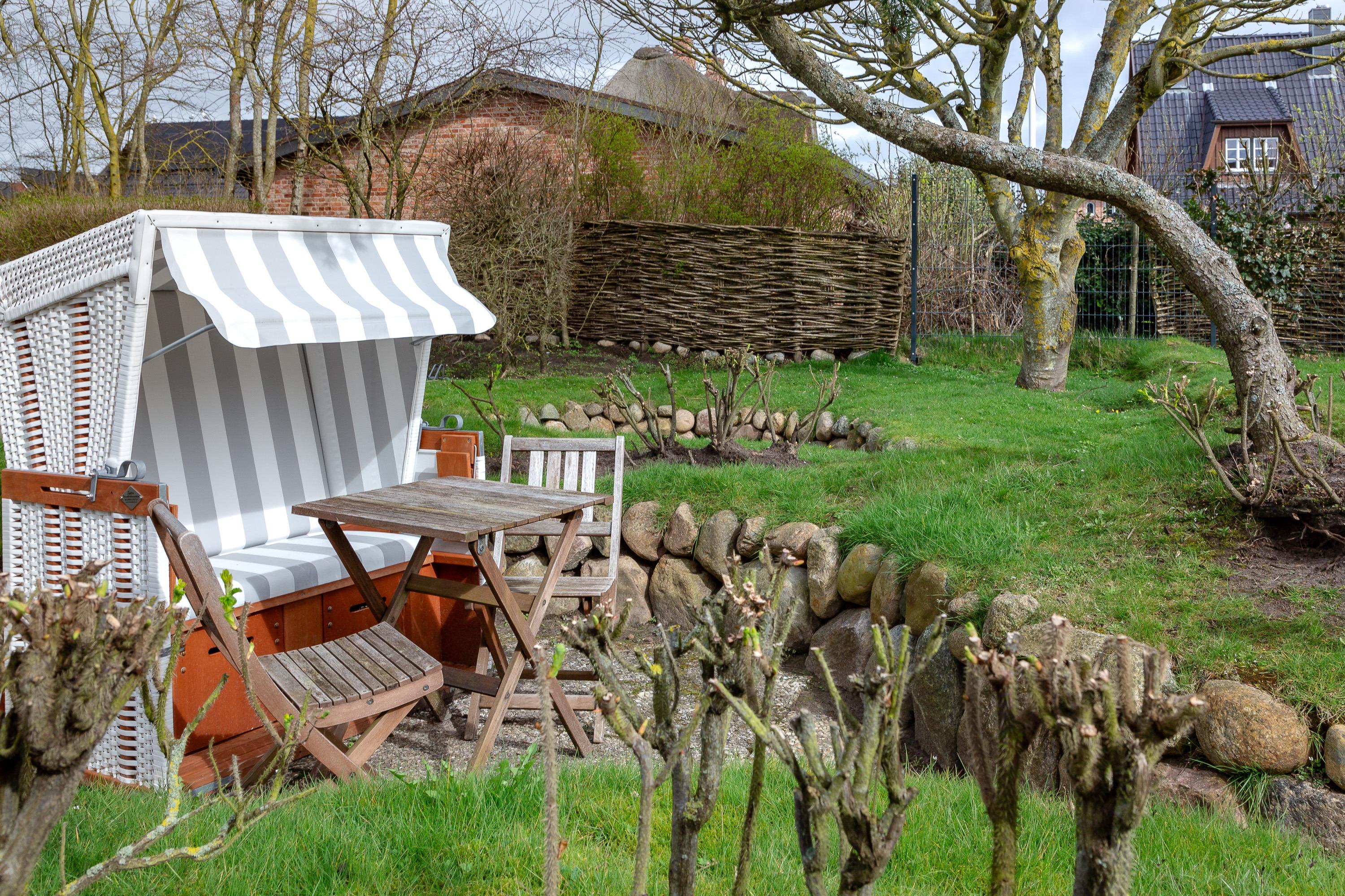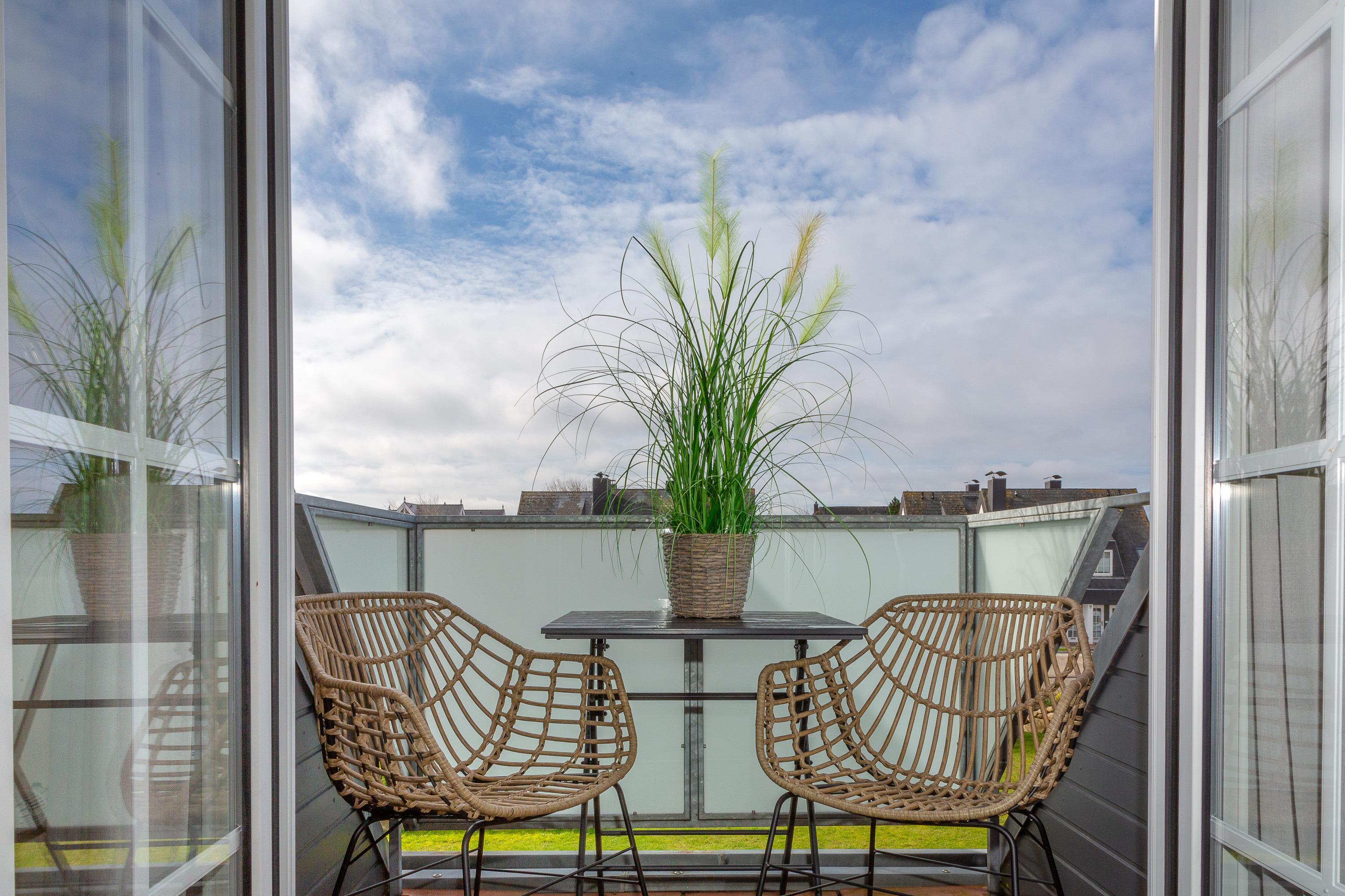 Ein kleiner Balkon, der nach Süden ausgerichtet ist, bietet Ihnen bis in die Abendstunden einen gemütlichen Platz um die Sylter Sonne zu genießen. Im Garten des Hauses finden Sie außerdem eine Sonnenkuhle mit Strandkorb, die Sie gerne zusätzlich nutzen dürfen.