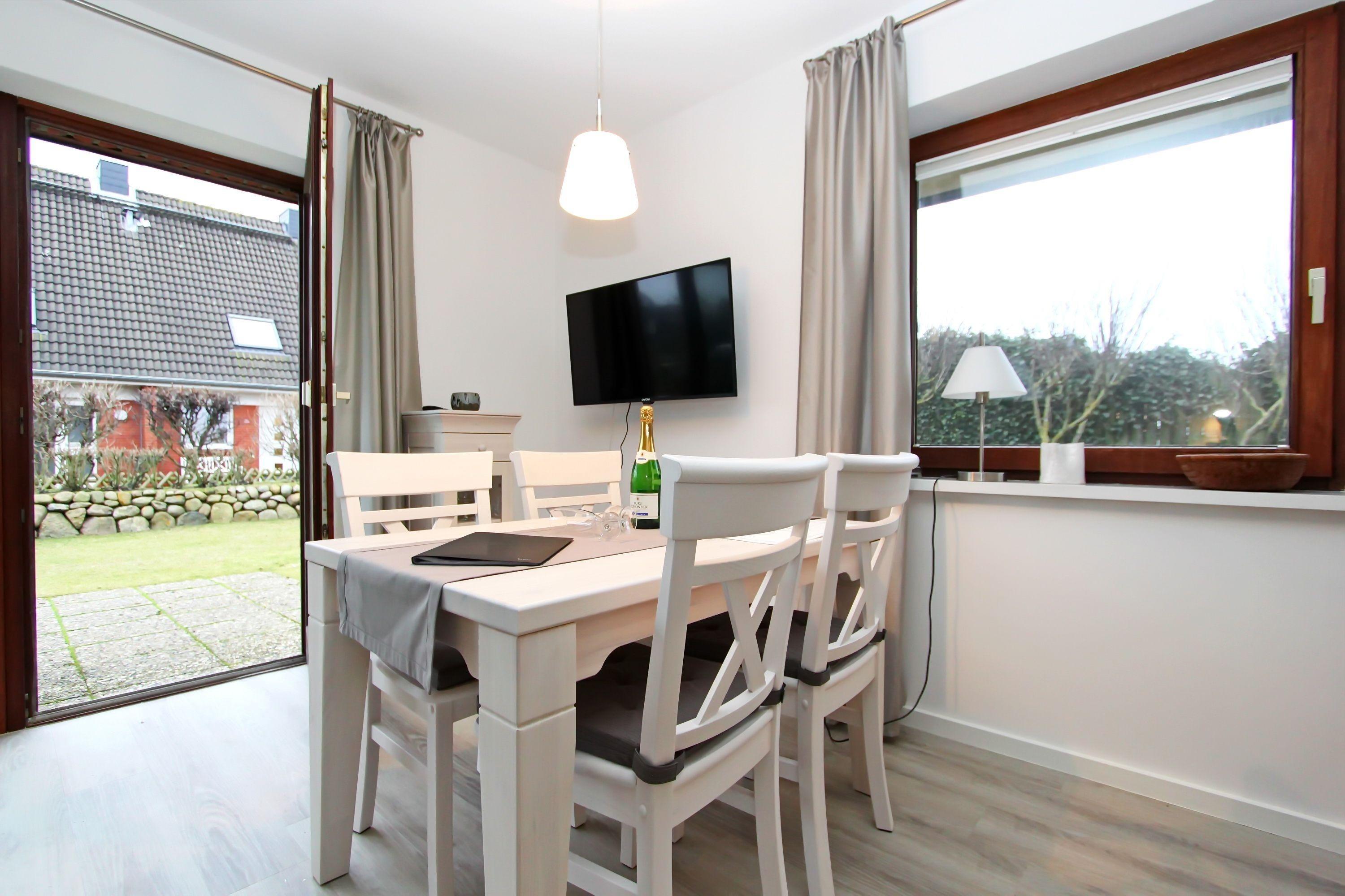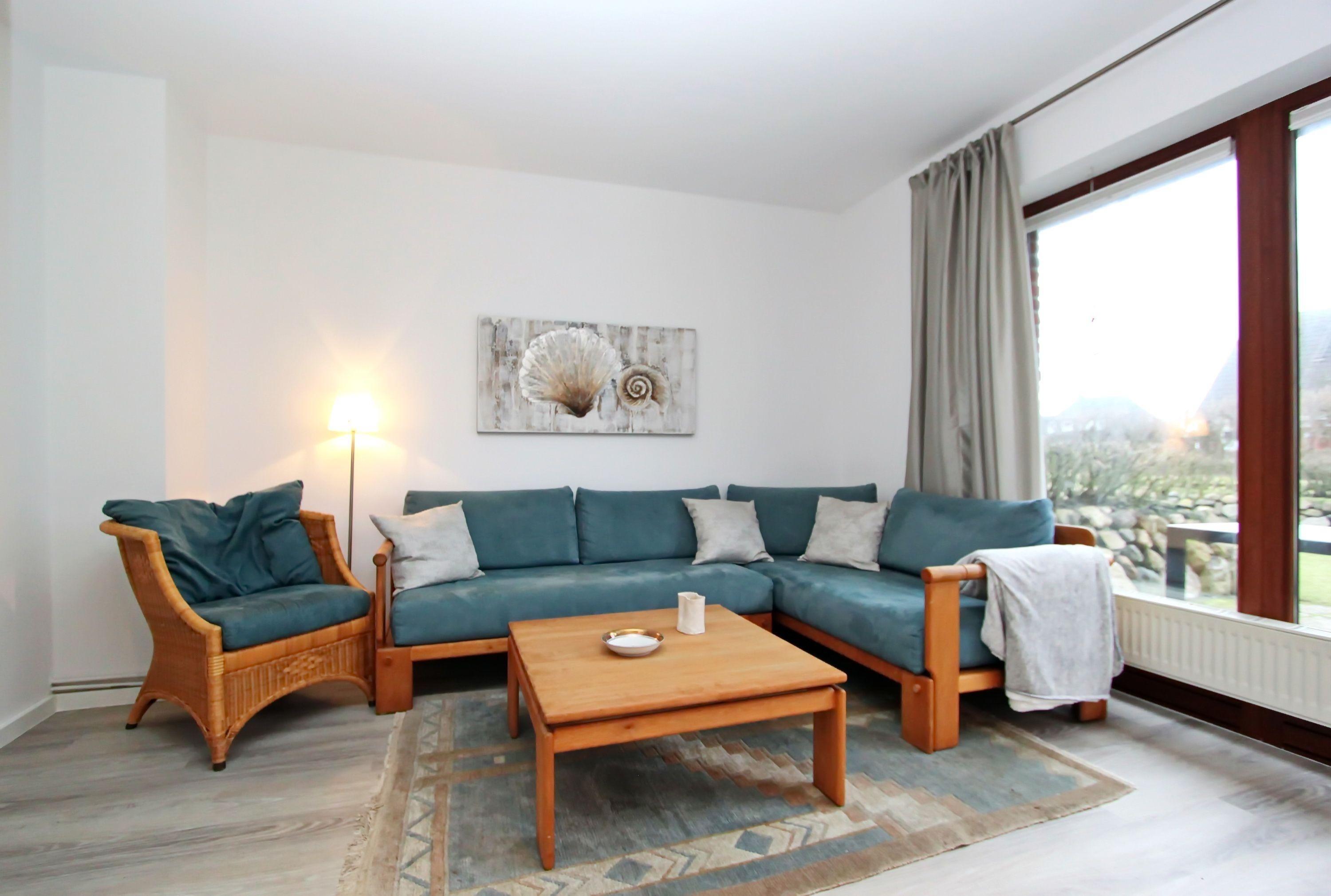 gepflegtes 2 Zi.-App. in ruhiger, zentraler Lage in Wenningstedt. Das Objekt befindet sich auf einer Ebene im EG, ist ca. 45 m² groß und bietet Platz für 2 Personen. Ein Wohn-/Schlafraum mit zwei 2 Sitzer-Couchen (als Bett umklappbar), Tisch, 1 Korbstuhl, Vitrinenschrank und Sideboard, Sat-Flat-TV, kl. Kompaktanlage mit CD-Player, offene Küche mit Ceranherd, Mikrowelle, Kühlschrank mit Gefrierfach und einen Essplatz für 4 Personen. Vom Wohnzimmer haben Sie direkten Zugang zur Westterrasse. Flur mit Garderobe. Schlafzimmer mit zwei Einzelbetten (zusammengeschoben), Nachtschränke sowie ein großer Kleiderschrank, der ausreichend Stauraum bietet. Duschbad/WC. Zum Appartement gehört der Stellplatz 3.