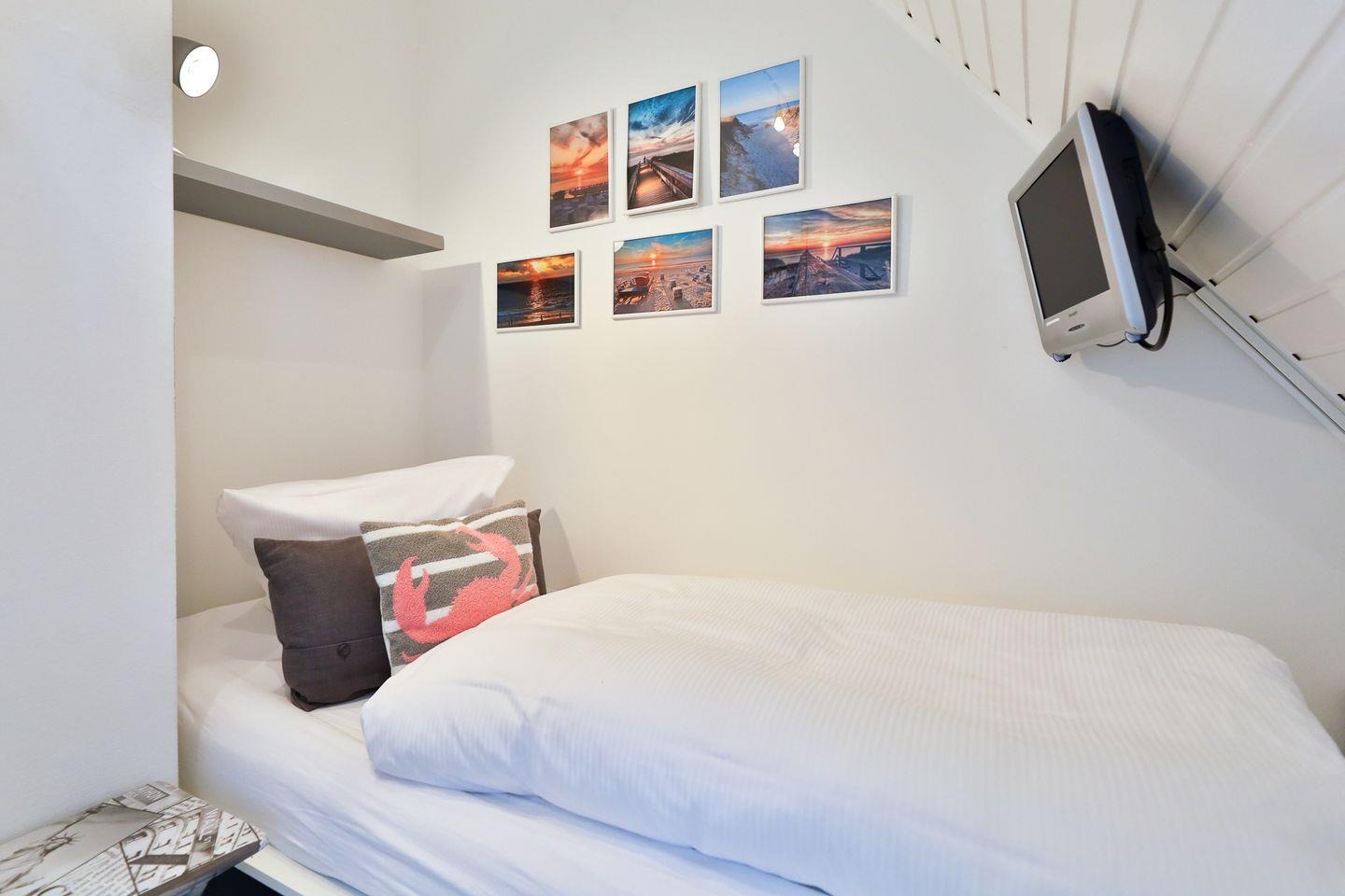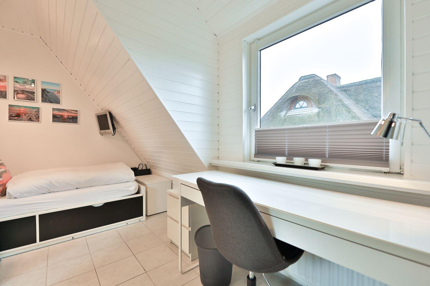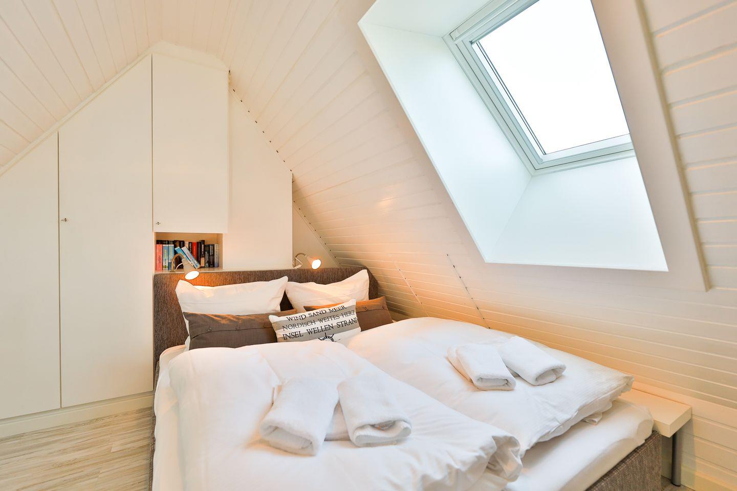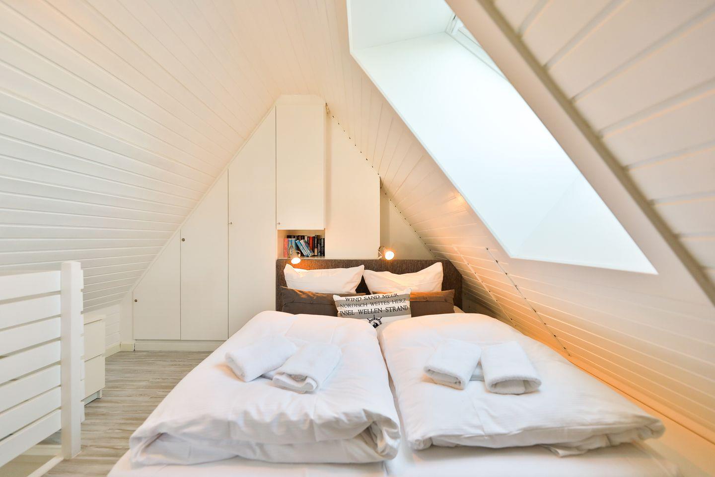 Ein kleines Schlafzimmer mit einem kuscheligen Einzelbett und einem Schreibtisch sowie ein helles und modernes Duschbad runden das Obergeschoss ab. Eine Treppe höher im Dachgeschoss lädt dann ein gemütliches Schlafzimmer mit Doppelbett zum Schlafen wie im Siebten Himmel ein - eben ganz wie es sich für eine perfekte Auszeit gehört.