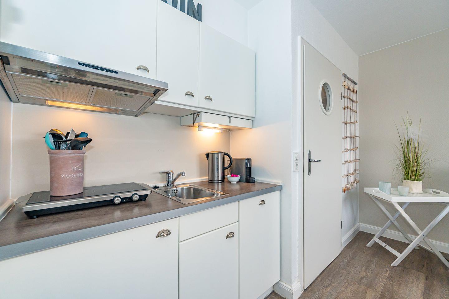 Im 2. OG der Wohnanlage befindet sich die Ferienwohnung Möwennest. Diese 2-Zimmerwohnung (ca. 45 m²) liegt zentral und strandnah in Wenningstedt und verteilt sich über zwei Ebenen. Der gemütlich eingerichtete Wohn-/Essbereich präsentiert sich in harmonischen Tönen mit einem Sofa und TV mit integriertem Radio und DVD Player. Angrenzend befindet sich die offene Küchenzeile (separater Minibackofen, 2- Platten Cerankochfeld , Geschirrspüler, Kaffeemaschine und Nespresso Kapselmaschine). Das Badezimmer mit Dusche und WC und der nach Westen ausgerichtete Sonnenbalkon mit Gartenmöbeln auf dem Sie wunderschöne Nachmittage und Abende verbringen können befinden sich ebenfalls auf dieser Ebene. Über eine Treppe gelangen Sie in das Schlafzimmer mit einem Flachbildschirm TV, DVD Player und einem Boxspringbett (180 x 200 cm) mit zwei unterschiedlich harten Matratzen (Härtegrad 2 und 3). Nach vorheriger Anmeldung dürfen Sie Ihren kleinen, wohlerzogenen Hund gegen Gebühr mitbringen (10,- € pro Tier/Tag). Lebensmittelgeschäfte, Bäckereien eine Drogerie, Cafés, beliebte Restaurants, Fahrradverleihe, Autoverleih und eine Bushaltestelle befinden sich in direkter Nachbarschaft. Ebenfalls fußläufig gelangen Sie an den nahe gelegenen Strand den Sie in weniger als 10 Minuten erreichen. Die Wohnung verfügt über WLAN.