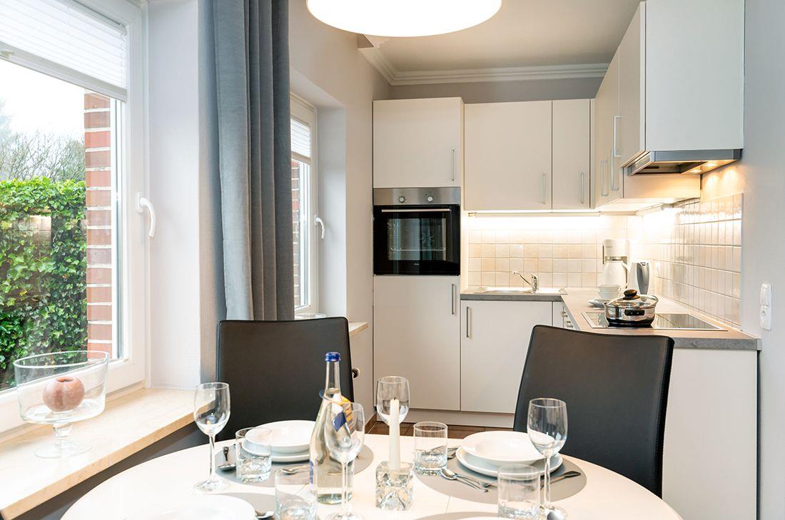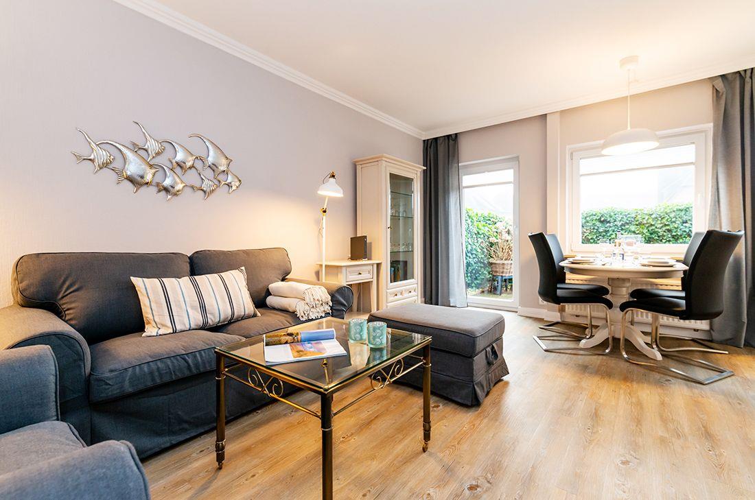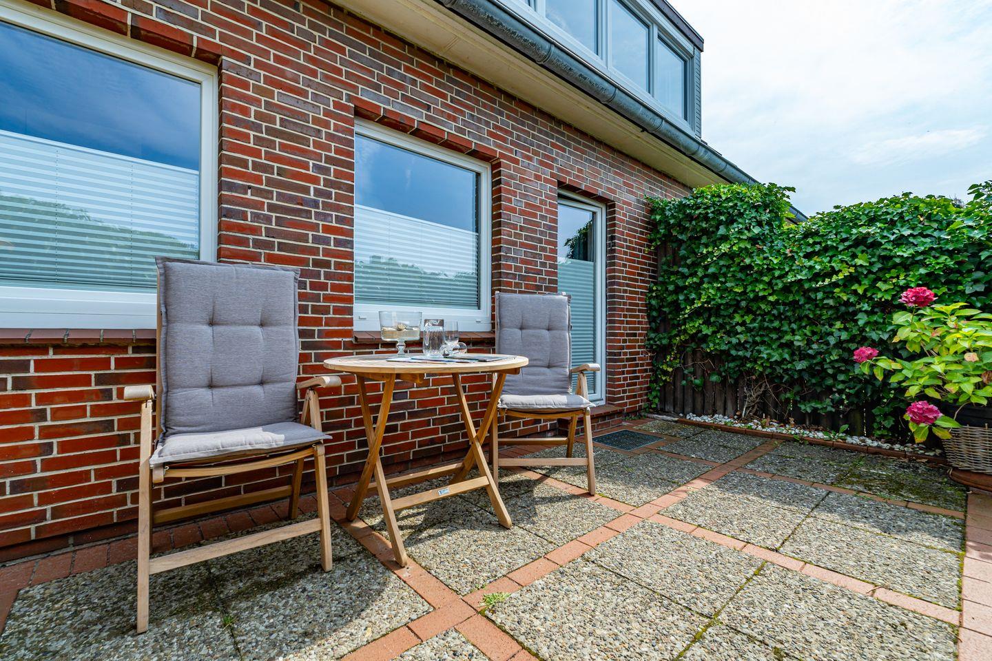 3-Zimmer-Ferienwohnung im EG für max. 3 Personen mit Terrasse & Strandkorb.