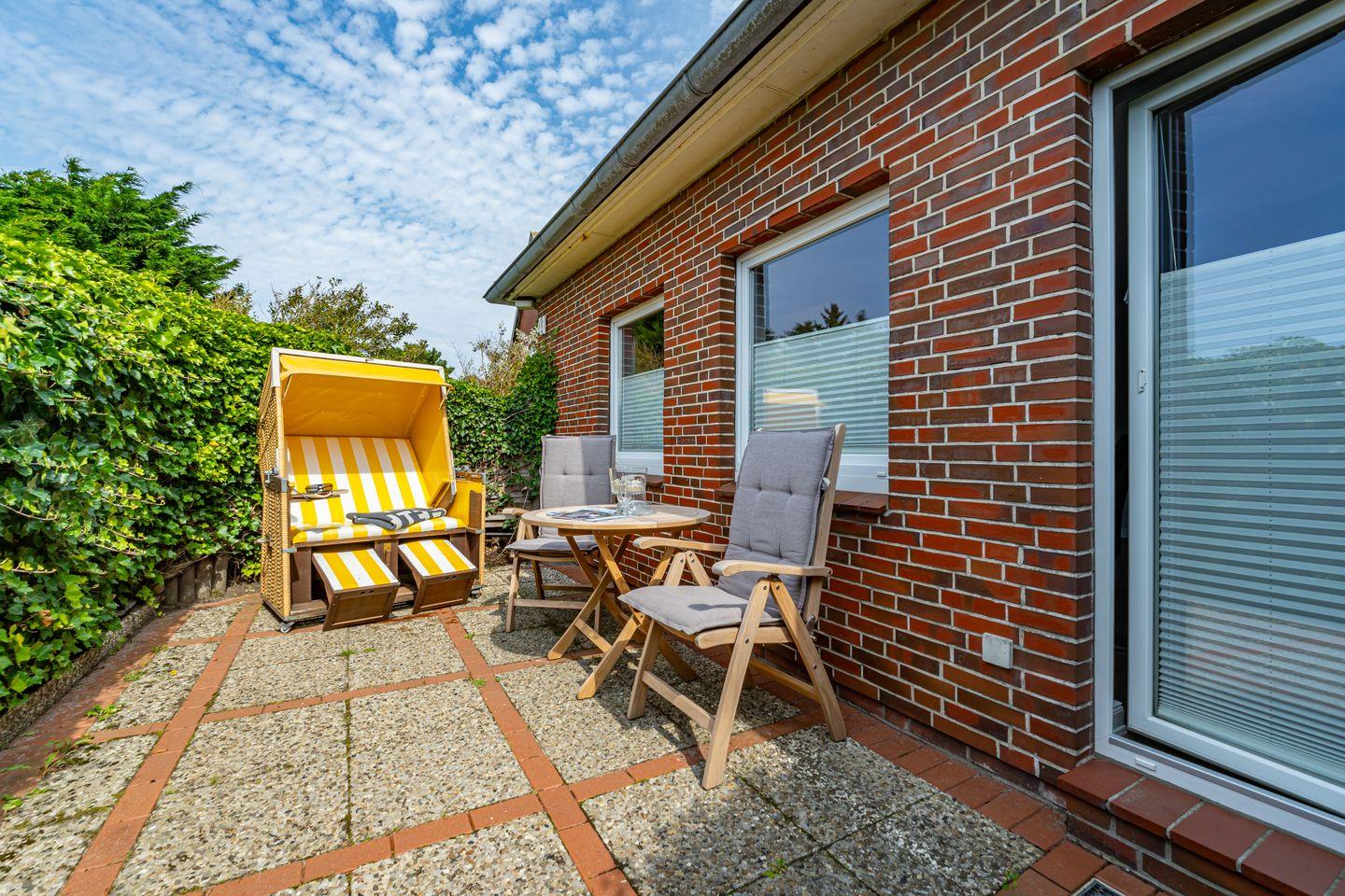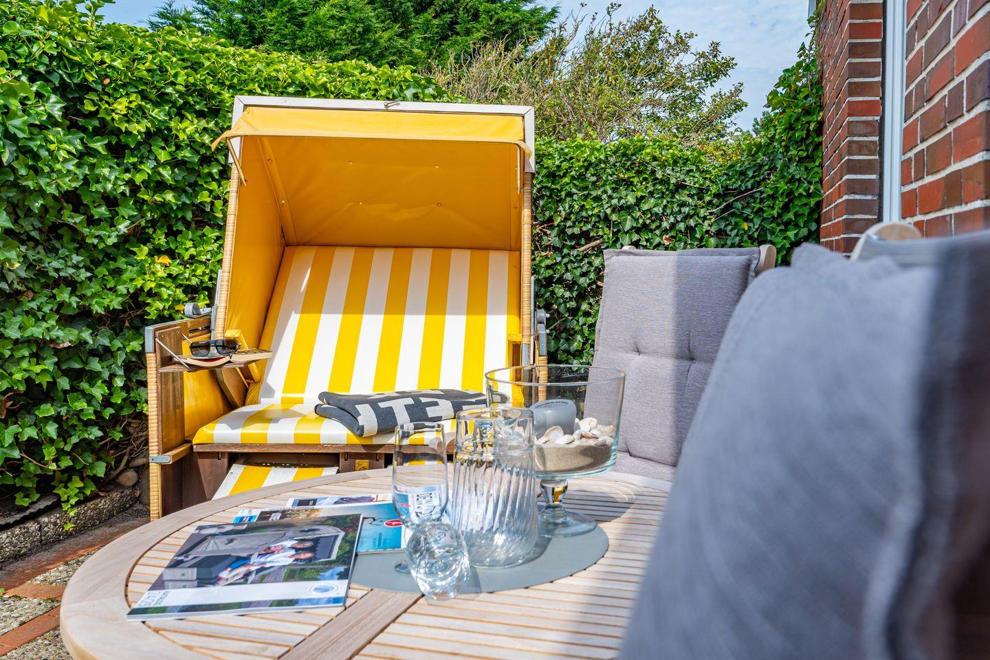 Gemütliche 3-Zimmer-Ferienwohnung in Wenningstedt mit Terrasse, Strandkorb und nur 600 m zum Strand.
