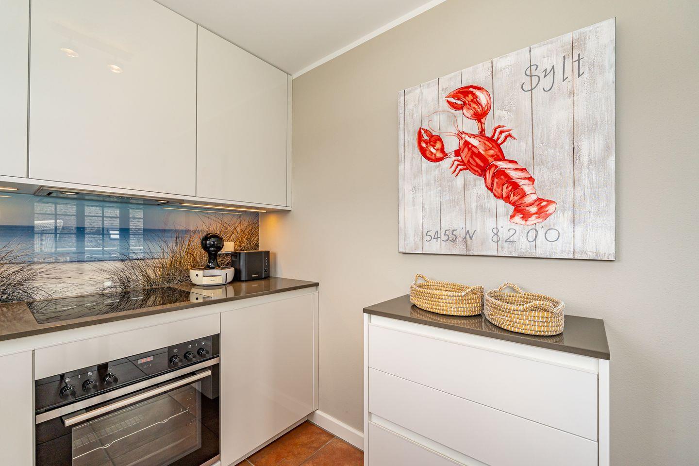 Die 3-Zimmer-Ferienwohnung befindet sich im 1.OG und DG. Vom Flur der Ferienwohnung aus erreichen Sie den hellen Wohn- und Essbereich mit gemütlicher Couch, TV und Essplatz. In der angrenzenden offenen Küche stehen Ihnen ein Geschirrspüler, Kühlschrank mit Gefrierfach , Mikrowelle und Kaffeefiltermaschine zur Verfügung. Vom Wohn- und Essbereich haben Sie Zutritt zum Balkon mit Gartenmöbeln und typischen Sylter Strandkorb. Ebenfalls im 1. OG der Ferienwohnung befindet sich eines der beiden Schlafzimmer (Doppelbett 140x200cm) mit TV und das Badezimmer mit Dusche. Über eine Treppe gelangen Sie in das Dachgeschoss mit Schlafzimmer (Doppelbett 180x200cm) und TV. Hier befindet sich auch ein separates Gäste WC mit Toilette. Zur Ferienwohnung gehört ein kostenfreier Stellplatz. WLAN ist selbstverständlich vorhanden. In dieser Ferienwohnung sind leider keine Haustiere erlaubt. Die Ferienwohnung verfügt über einen praktischen Kombi-Waschtrockner.