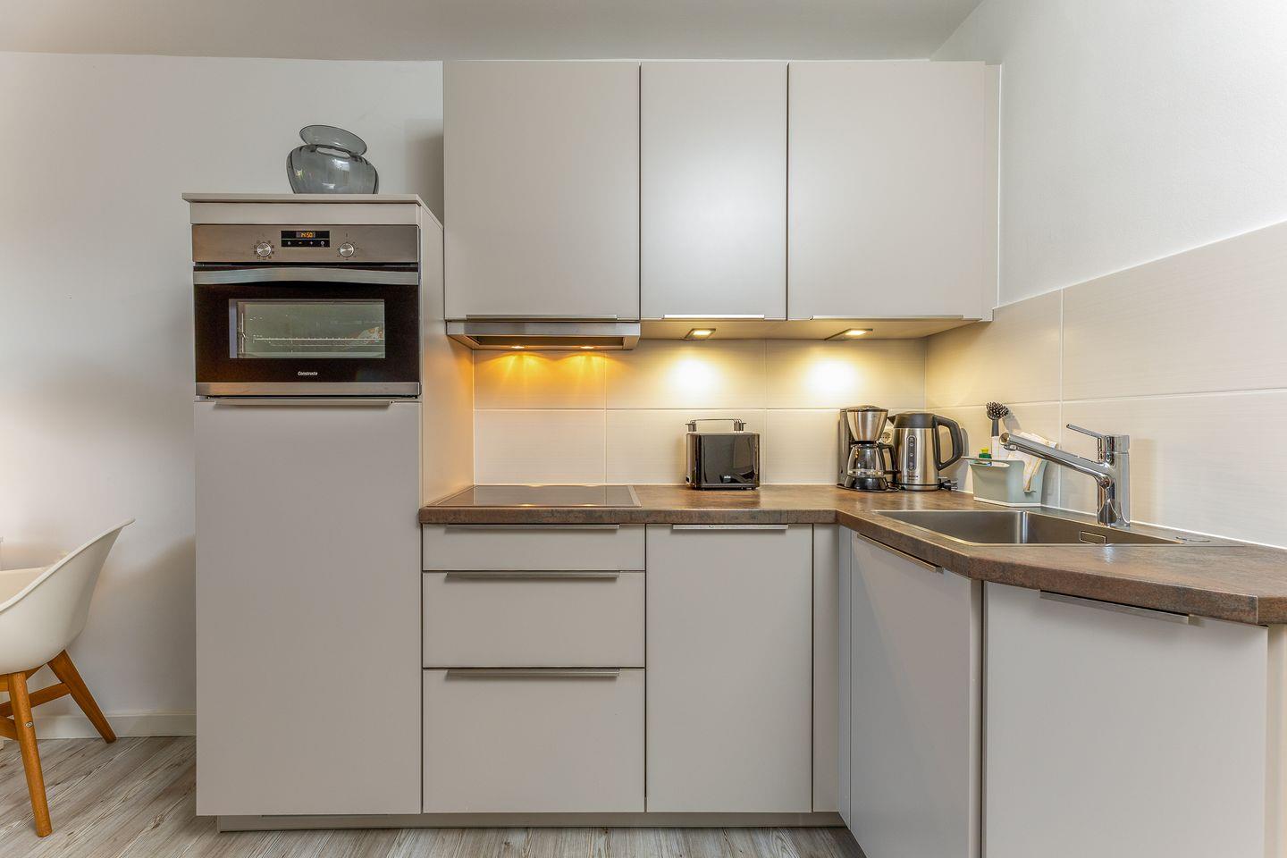 Das Appartement Nis Puk in Wenningstedt besticht durch skandinavisches Design, helle Farben und eine gemütliche Terrasse nahe dem Strand.