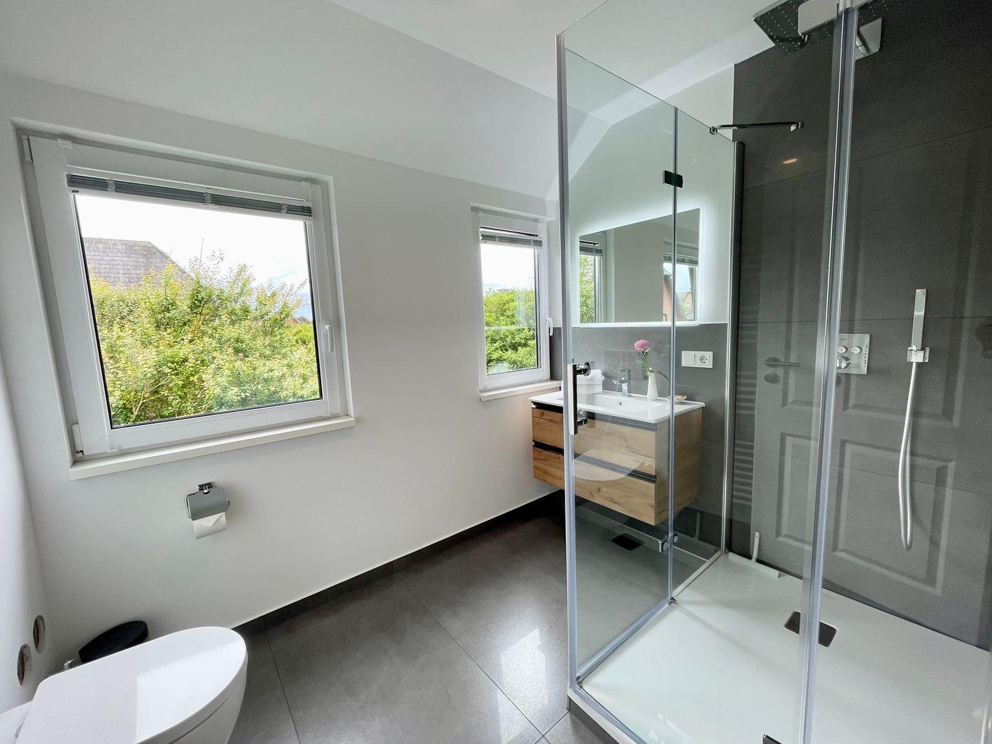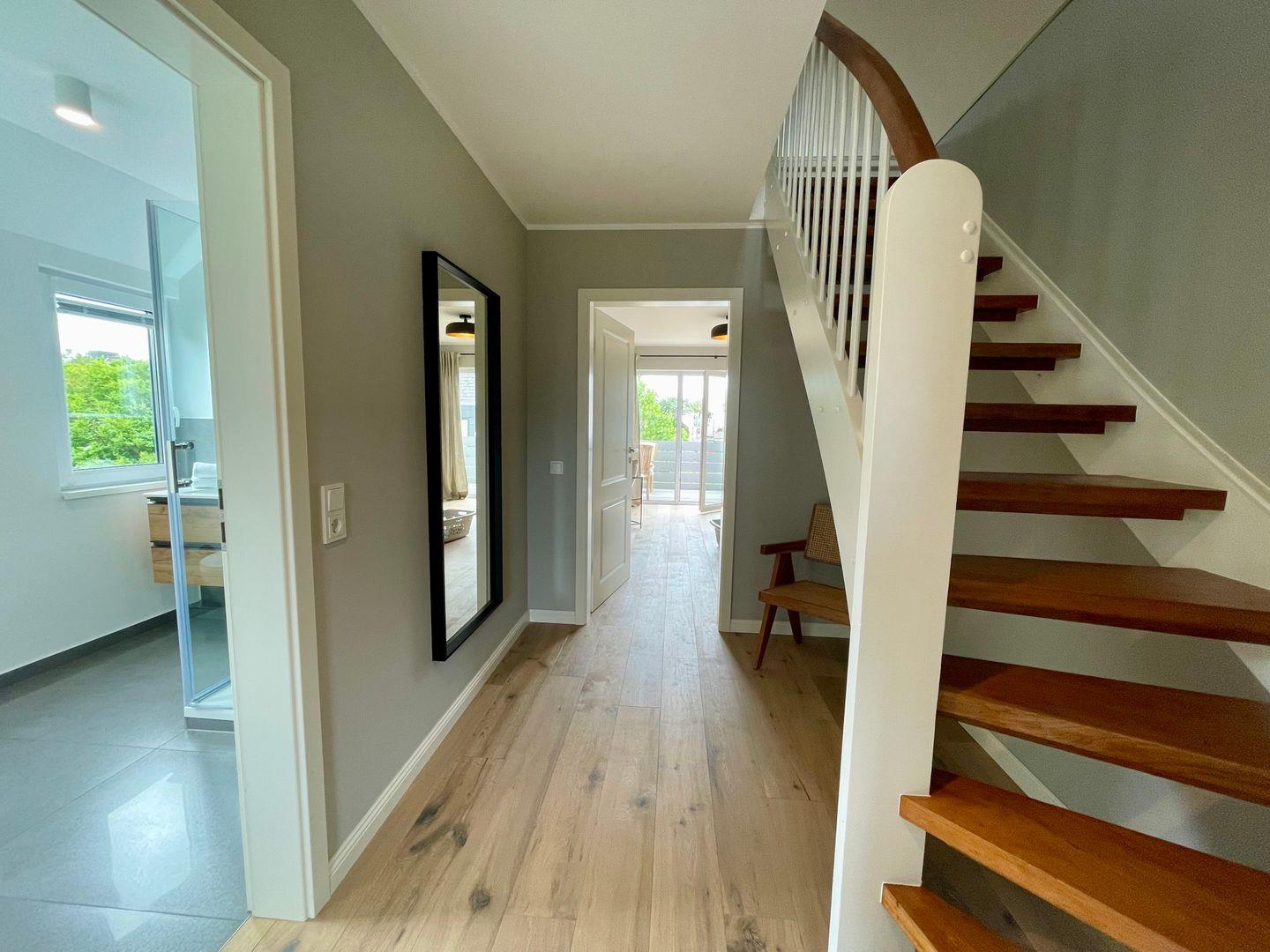 Die Wohnung befindet sich im ersten Obergeschoss und liegt angenehm ruhig auf einem sonnigen, von der Straße Im Tal zurückliegenden Grundstück – in zweiter Reihe hinter dem Haus Im Tal 5. Hier genießen Sie Privatsphäre, Ruhe und dennoch die unmittelbare Nähe zum Meer.