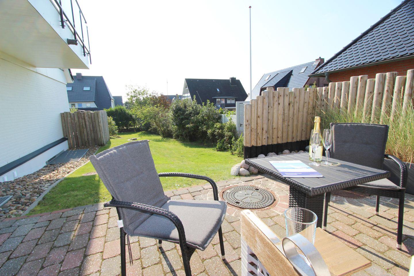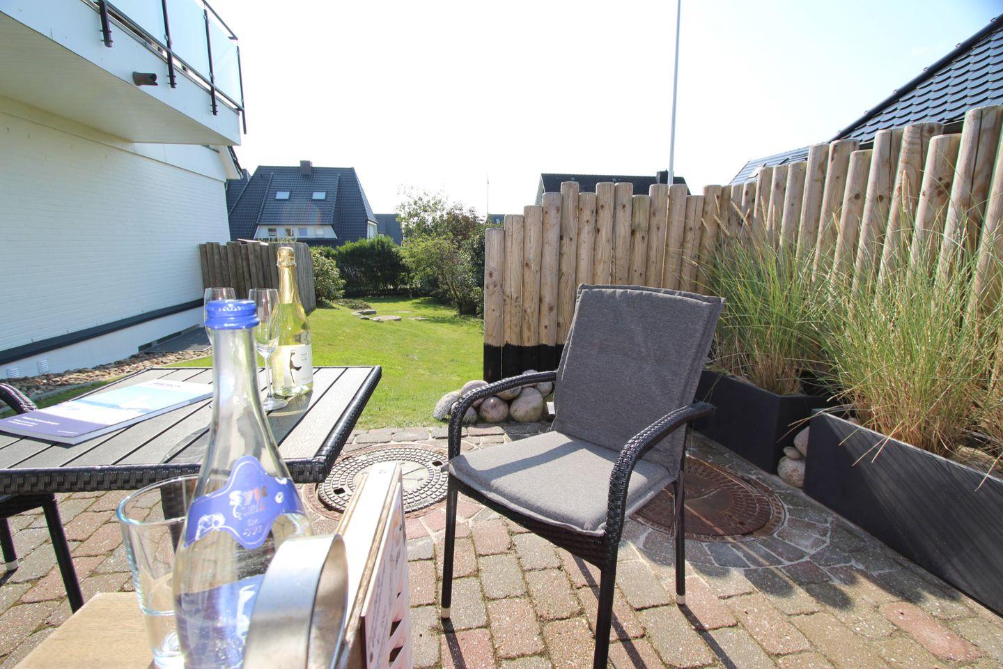 Auf der nach Westen ausgerichteten Terrasse mit eigenem Strandkorb (April bis Oktober) genießen Sie die reine Luft der Nordsee und können sich ausgiebig entspannen.