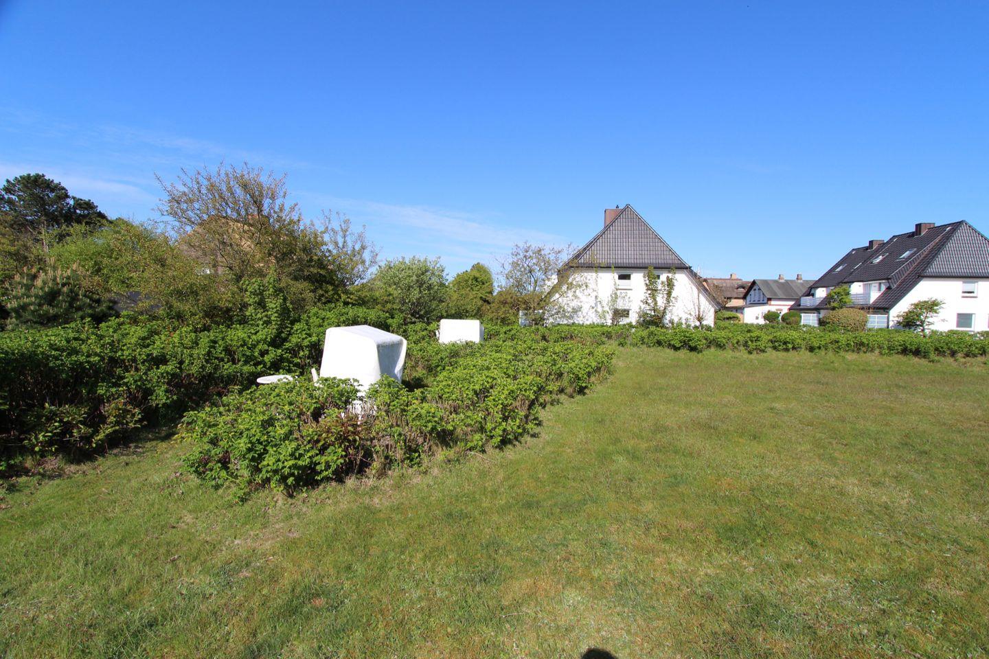 An den Wohnbereich angrenzend befindet sich ein kleiner Süd-Balkon. Zum ausgiebigen Sonnen können Sie den separaten Platz mit Strandkorb (April bis Oktober) im Garten nutzen.