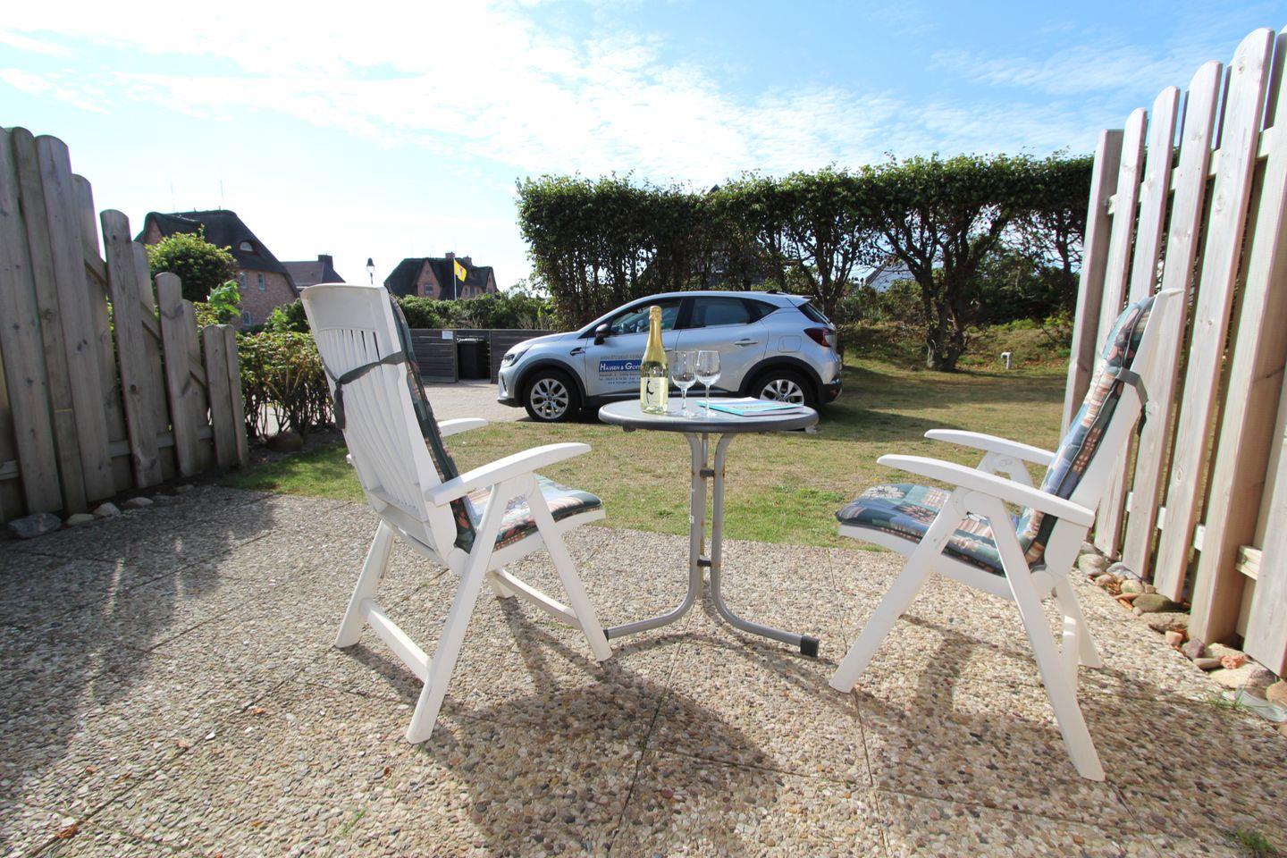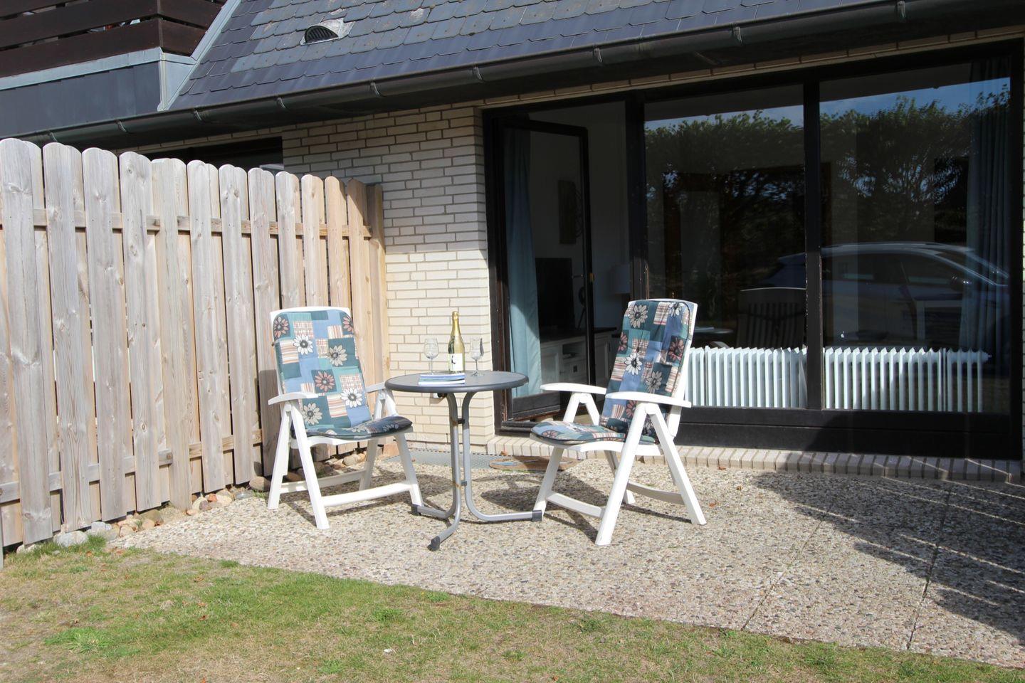 Eine wundervolle West-Terrasse bietet genügend Privatsphäre zum Abschalten. Nicht weit ist aber auch der endlose Weststrand mit seinen unzähligen Strandkörben.