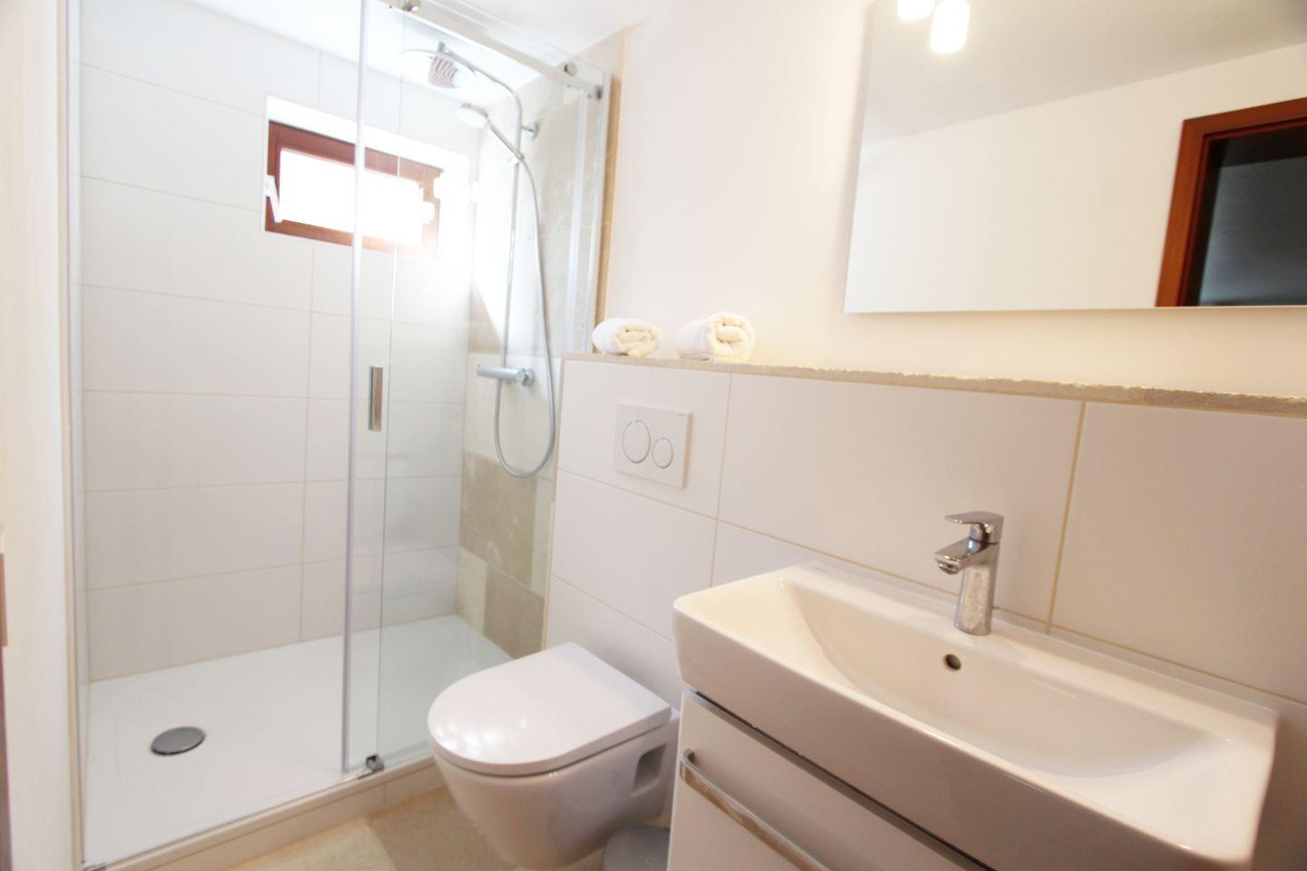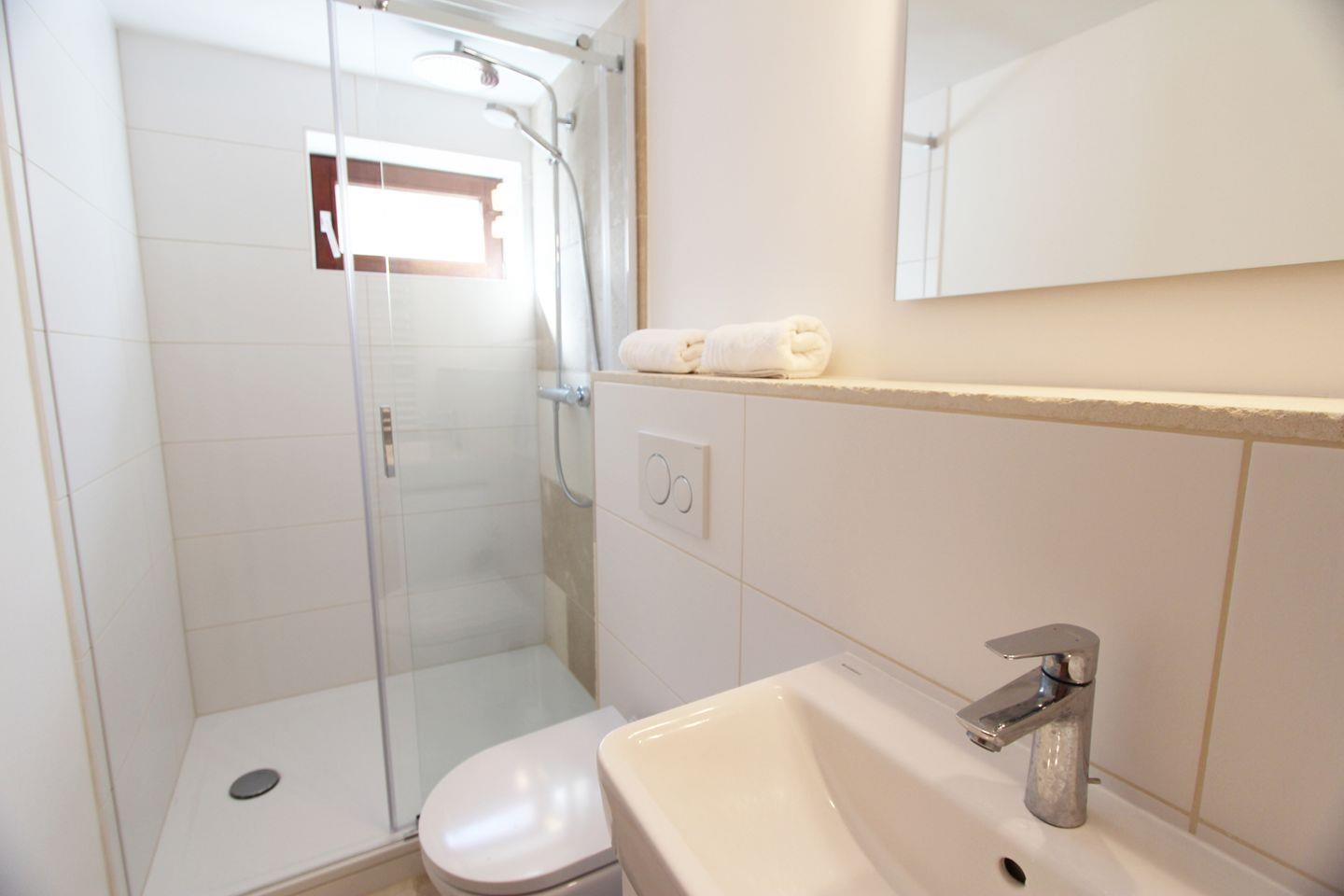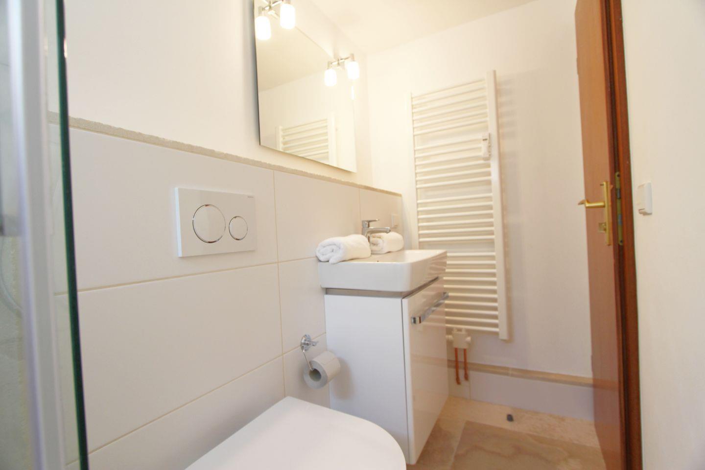 Angrenzend an den Schlafraum finden Sie das Duschbad mit WC. Ferner befindet sich im Erdgeschoss auf der Wohnebene ein Gäste-WC.