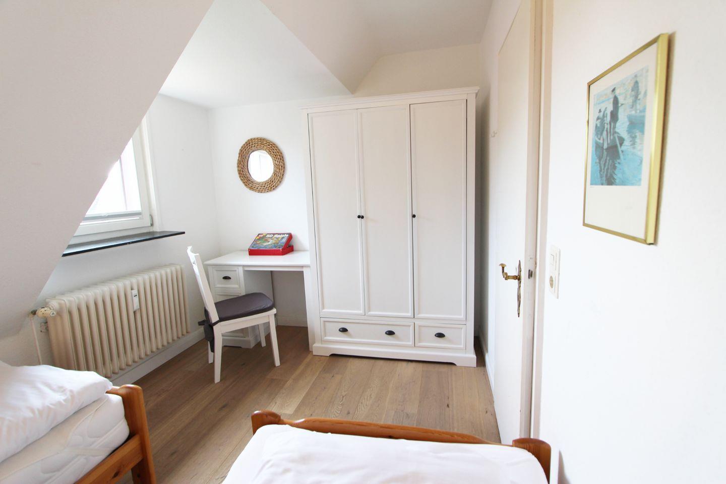 Sie nächtigen in den zwei schönen Schlafräumen im Ober- und Dachgeschoss. Im Schlafzimmer auf der Wohnebene nutzen Sie zwei Einzelbetten. Der Schlafraum im Dachgeschoss bietet ein gemütliches Doppelbett.