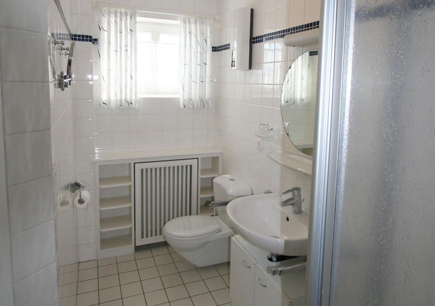 Das Duschbad verfügt über eine neue hochwertige Duschkabine und WC, durch das Fenster lassen Sie frische Nordseeluft und Tageslicht herein. Waschmaschine und Trockner stehen im Mieterkeller zur Verfügung.