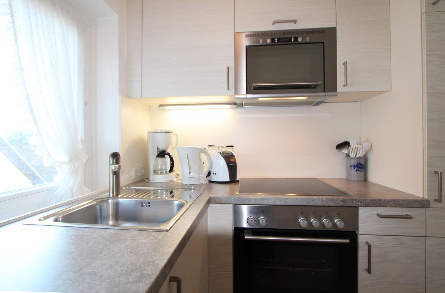 In der separaten Küche können Sie auf Grund der umfangreichen Ausstattung nach Herzenslust Speisen und Getränke zubereiten. Der Essplatz im Wohnraum ist direkt an einem Fenster gelegen und bietet somit viel Licht.