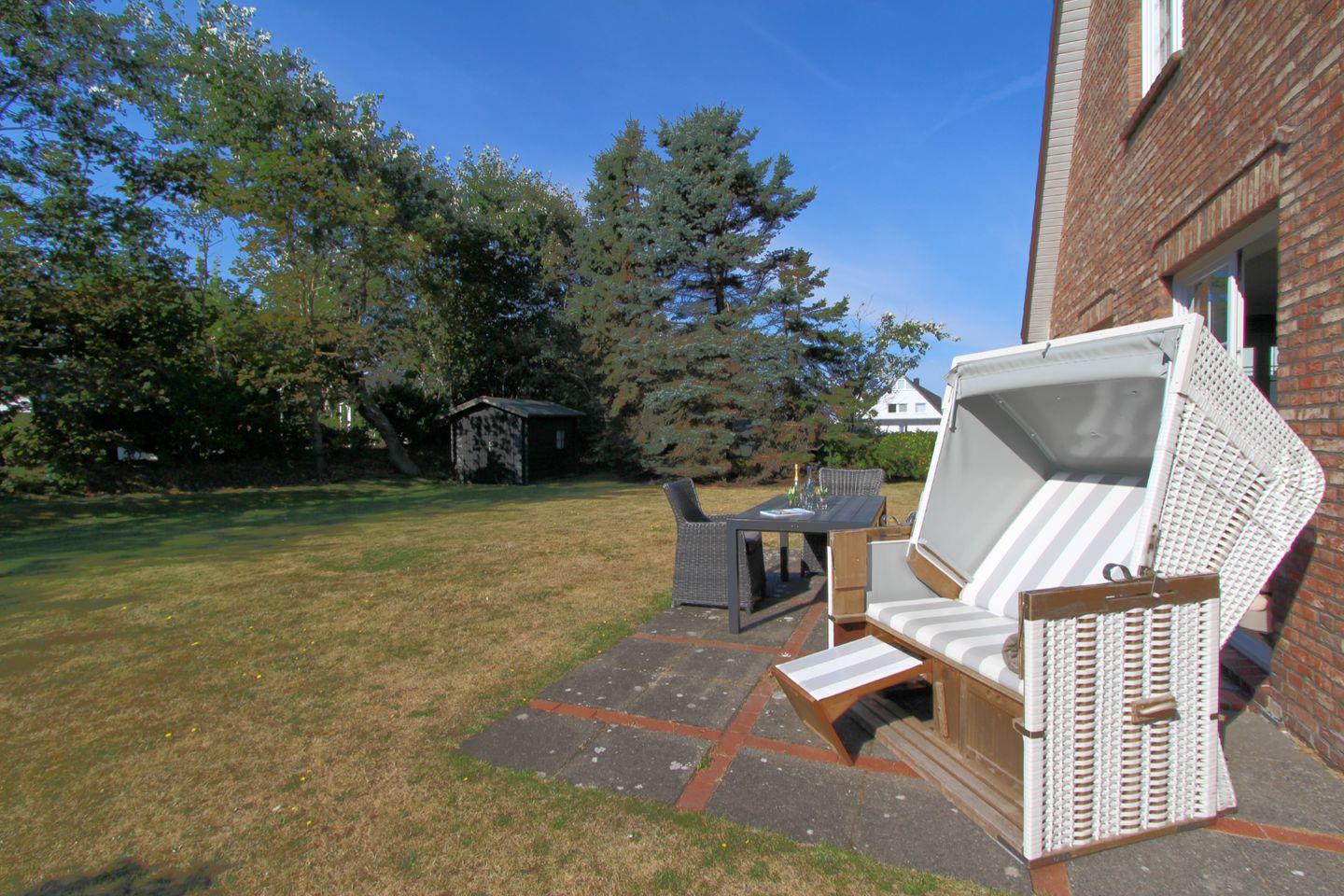 Genießen Sie auf der Süd-Terrasse die Sonne. Hier können Sie im Strandkorb (April bis Oktober) mit einem ausgiebigen Frühstück unter freiem Himmel optimal in einen neuen Urlaubstag auf Sylt starten.