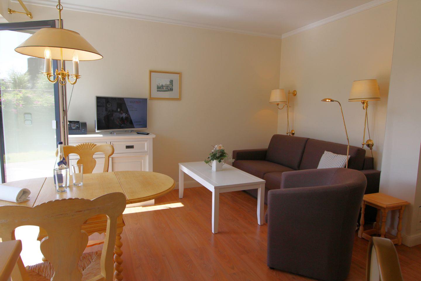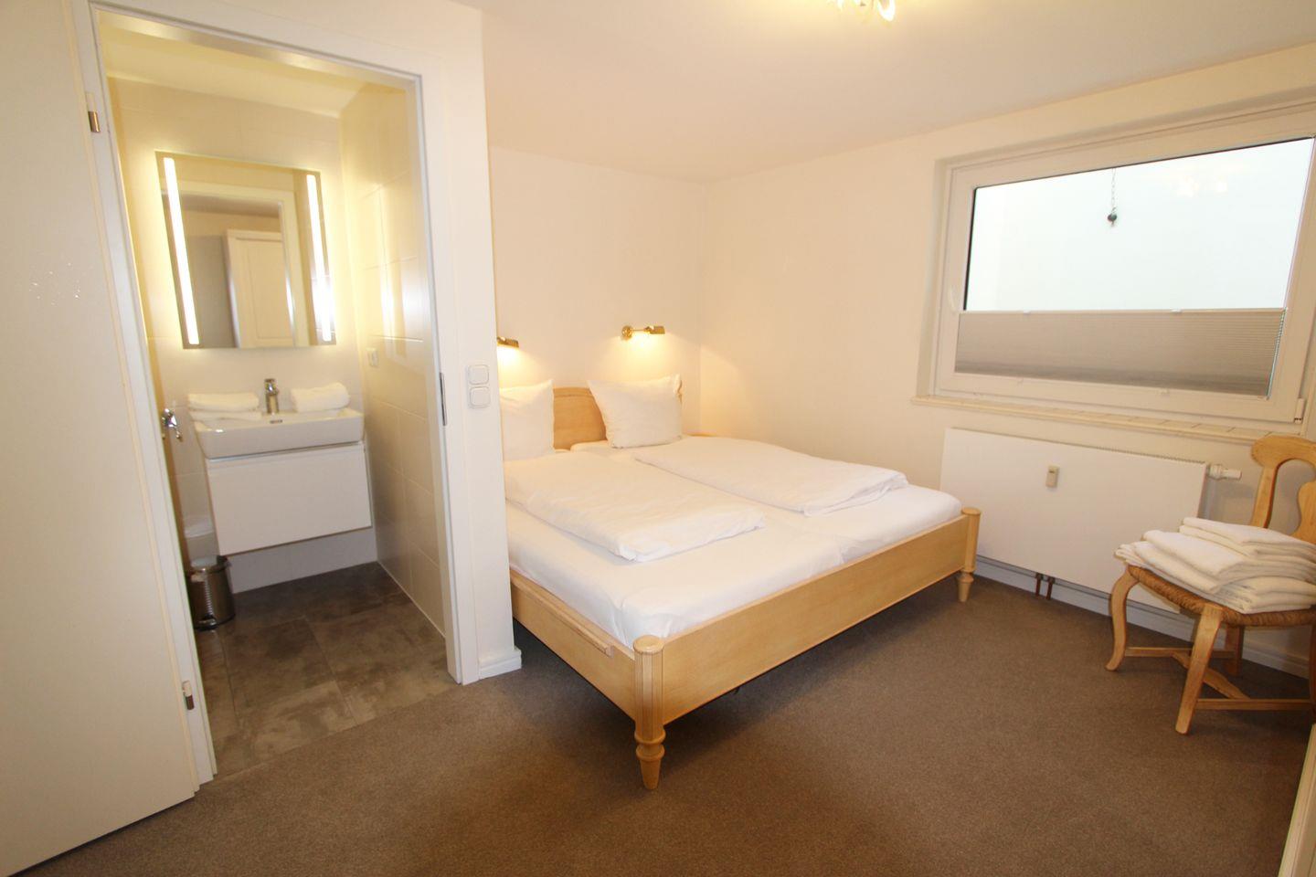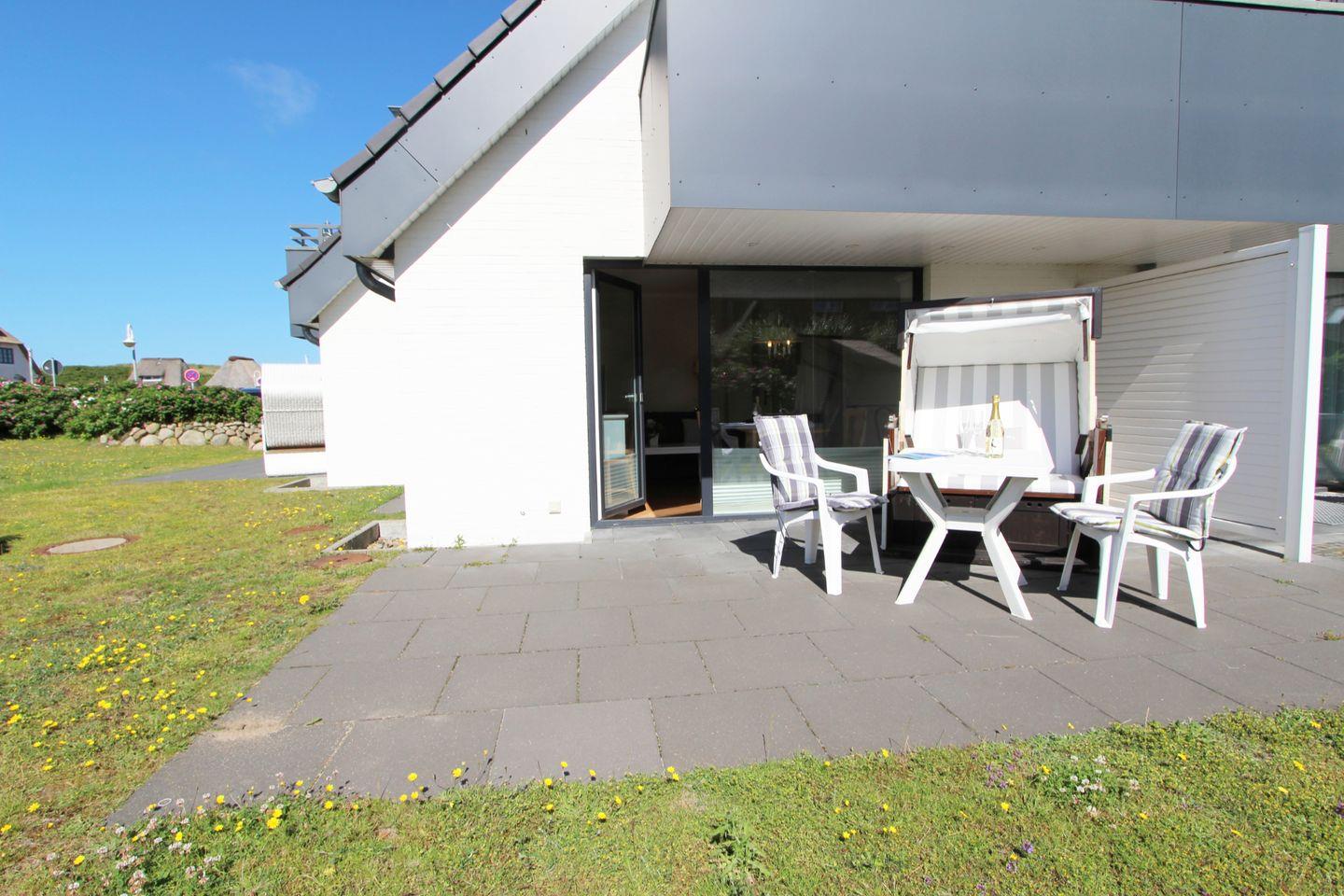 Die Terrasse eignet sich an sonnigen Tagen ideal für ein Frühstück an der frischen Luft. Ihnen steht ferner ein eigener inseltypischer Strandkorb (April bis Oktober) zur Verfügung.