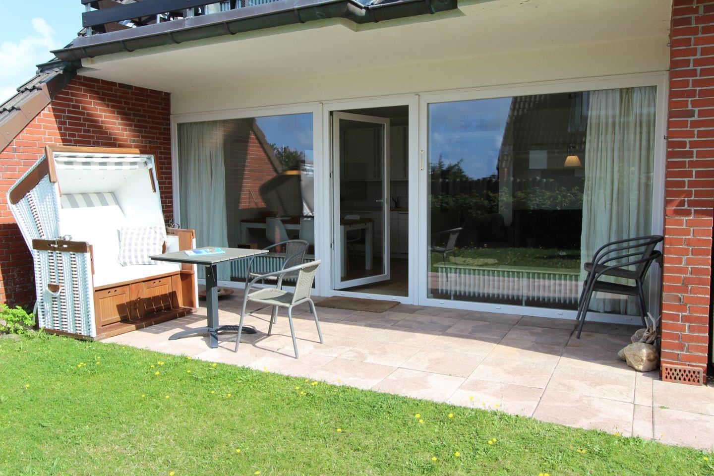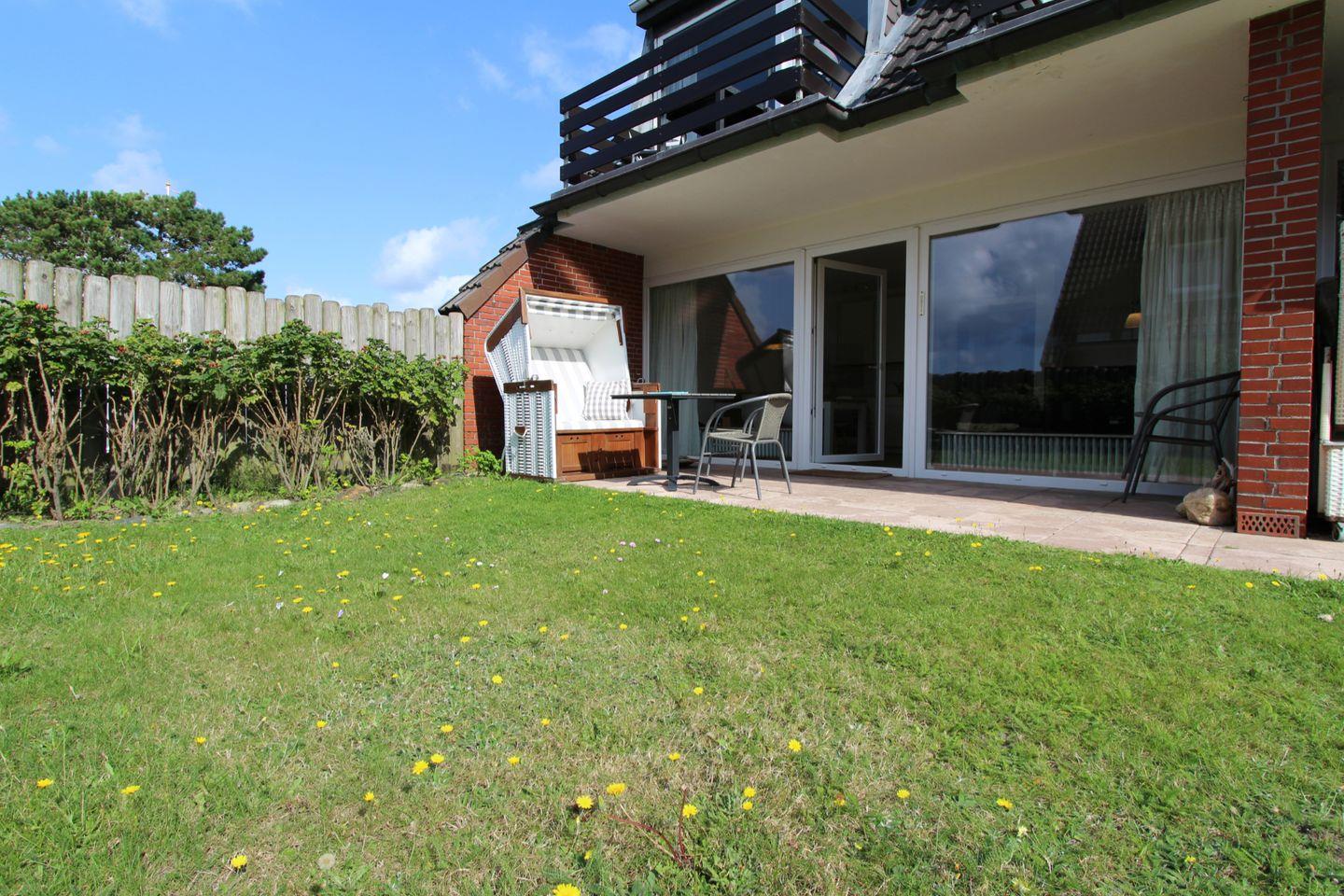Helle Erdgeschosswohnung in Wenningstedt mit Terrasse, Strandkorb und Nähe zum Weststrand für entspannte Nordseeferien.