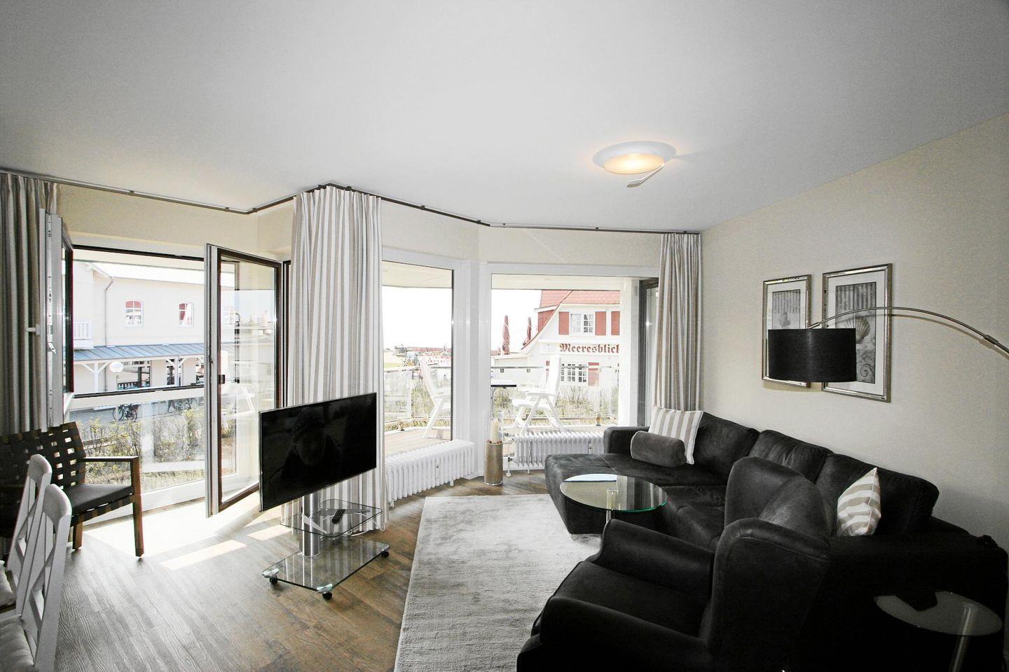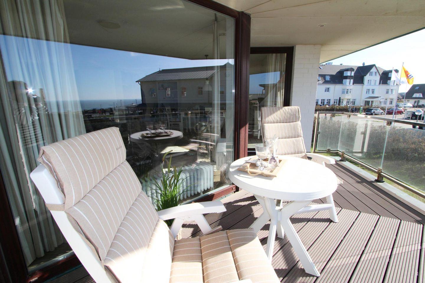 Hochwertige Ferienwohnung mit seitlichem Meerblick und großem Balkon am Wenningstedter Weststrand.