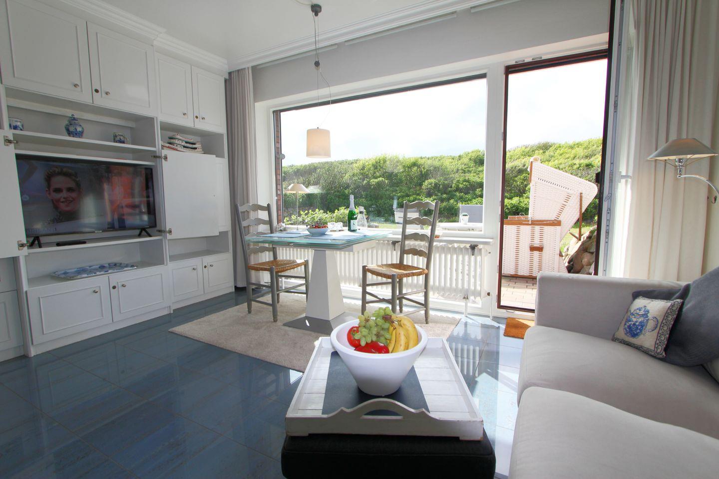 Helle 2-Zimmer-Erdgeschosswohnung nahe Strand mit Dünenblick und privater Westterrasse für entspannte Urlaubstage zu zweit.