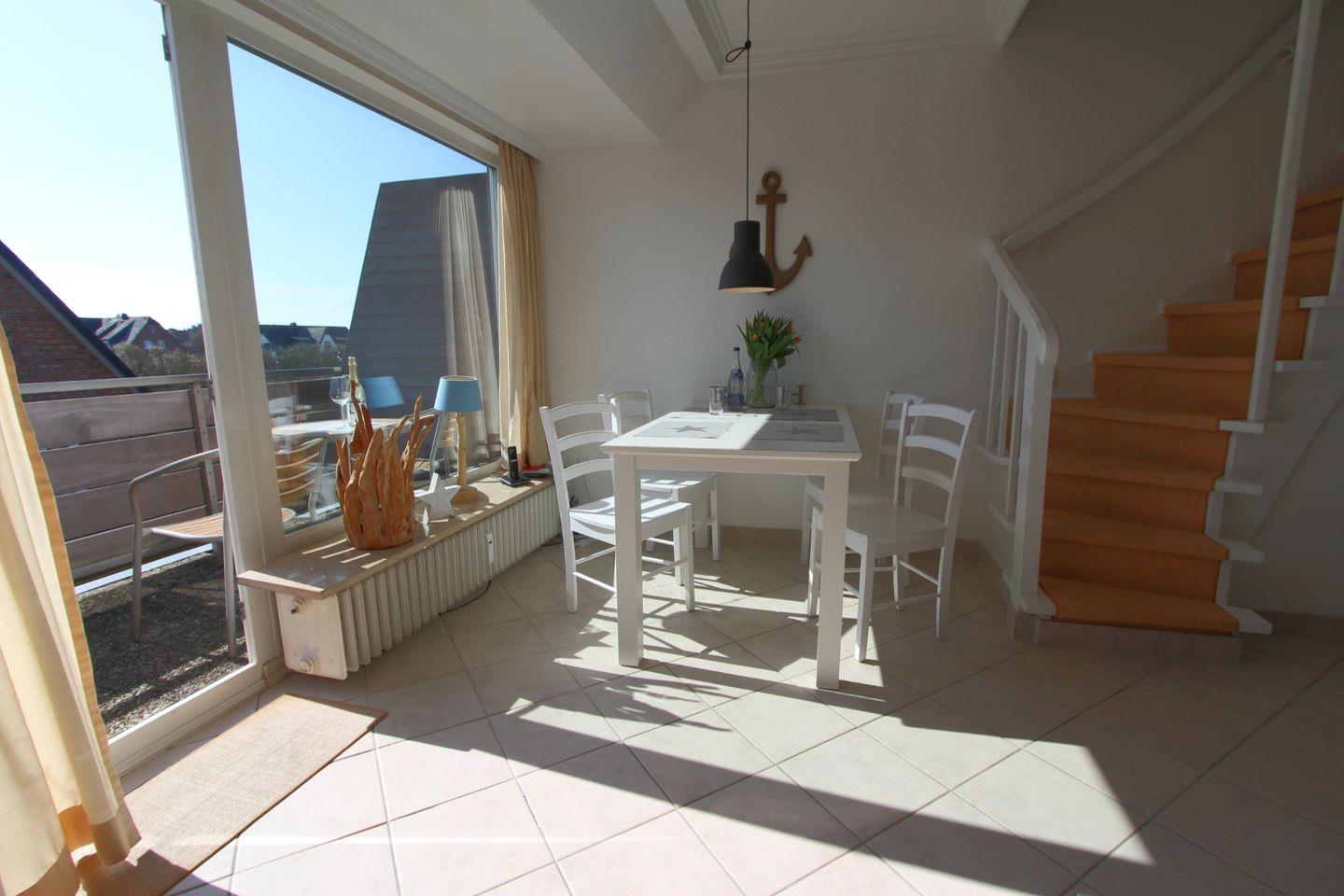 Modern eingerichtetes Ober- und Dachgeschoss-Appartement in Wenningstedt, strandnah und zentral, ideal für erholsamen Nordseeurlaub.