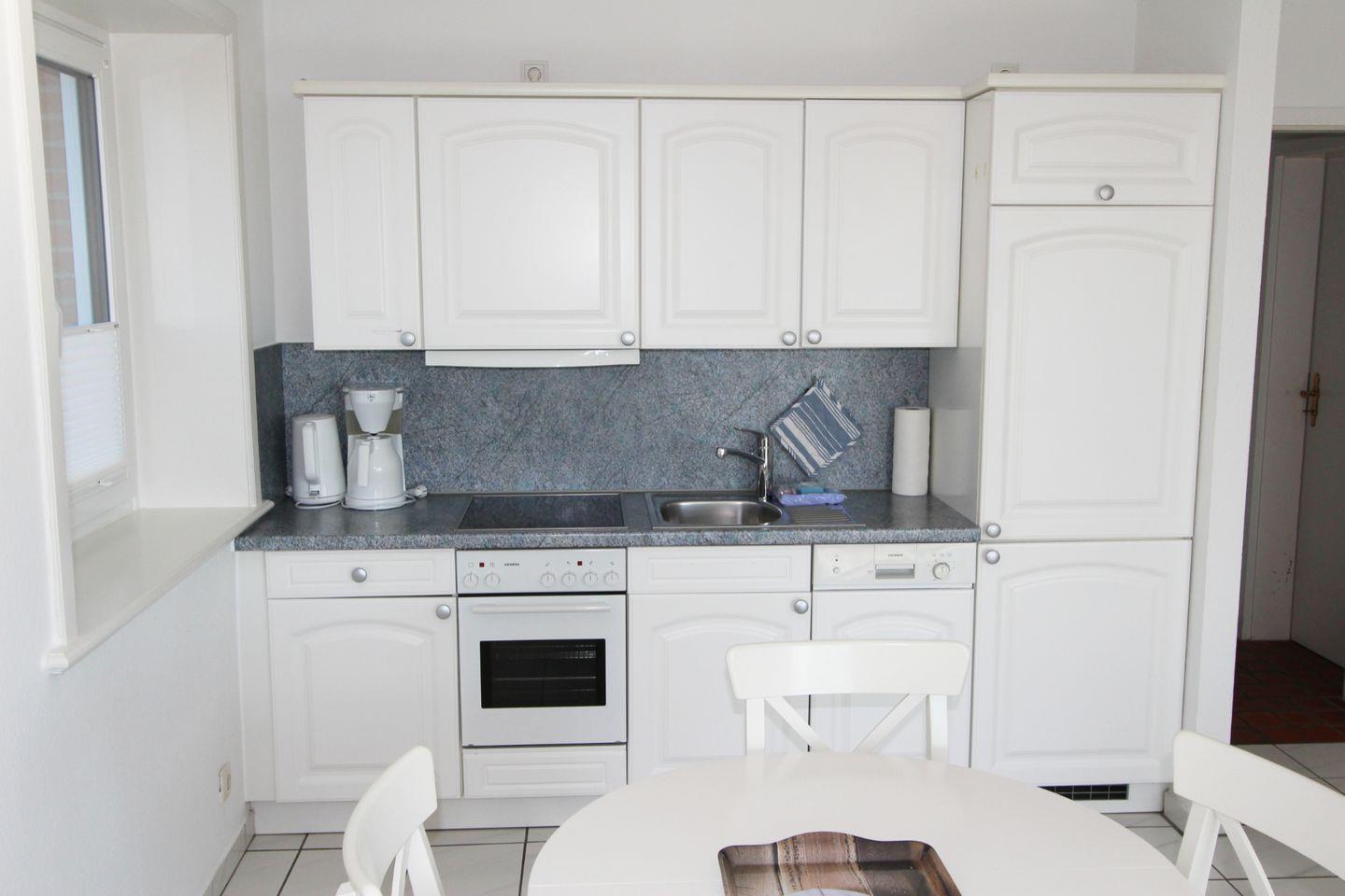 Die eingebaute Küchenzeile ermöglicht Ihnen, im Handumdrehen Ihr Lieblingsgericht zuzubereiten. Ferner können Sie im angrenzenden offenen Essensbereich speisen.