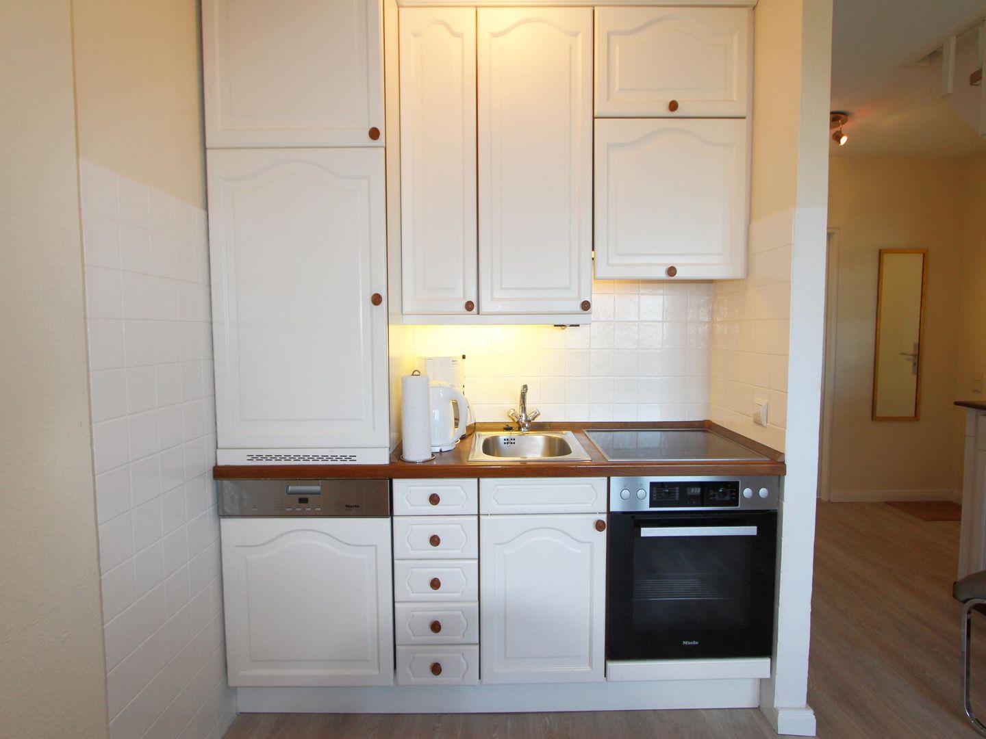 Die kleine Küchenzeile eignet sich hervorragend, um kleinere Speisen und Getränke zuzubereiten. Am angrenzenden Essensplatz kann gespeist und genossen werden.