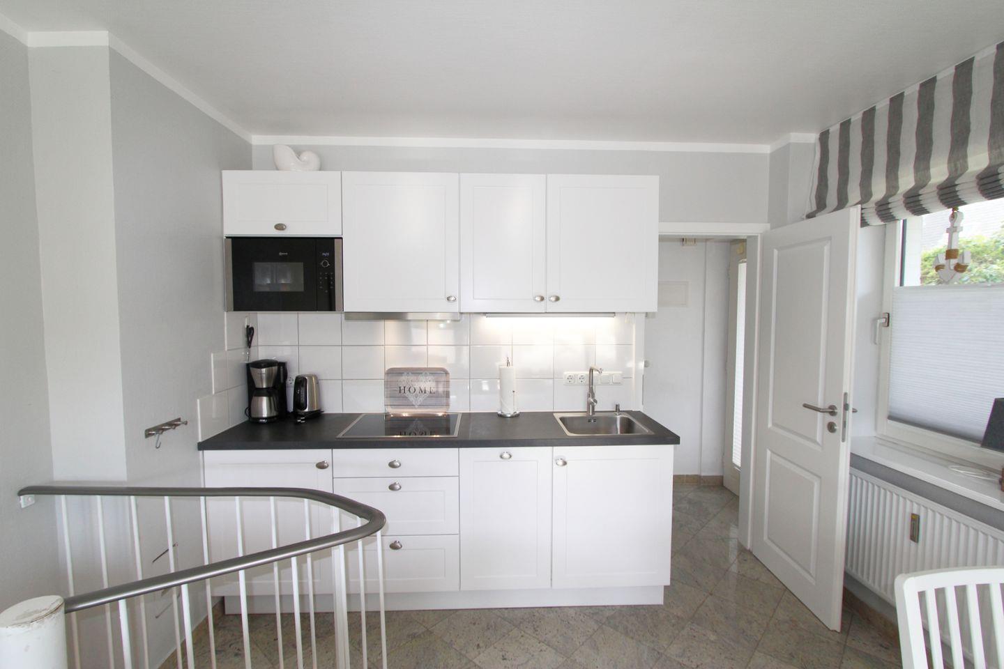 Angrenzend an den Wohnbereich befinden sich die Küchenzeile und der Essplatz, wo Sie ausgiebig kochen, speisen und genießen können.