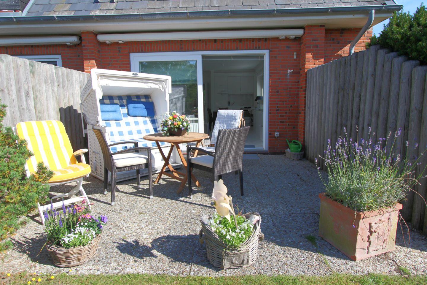 Die tolle Süd-Terrasse mit eigenem Strandkorb (April bis Oktober) ermöglicht es, bei gutem Wetter die Sylter Sonne in vollen Zügen zu genießen. Hier ist auch ein stärkendes Frühstück traumhaft!