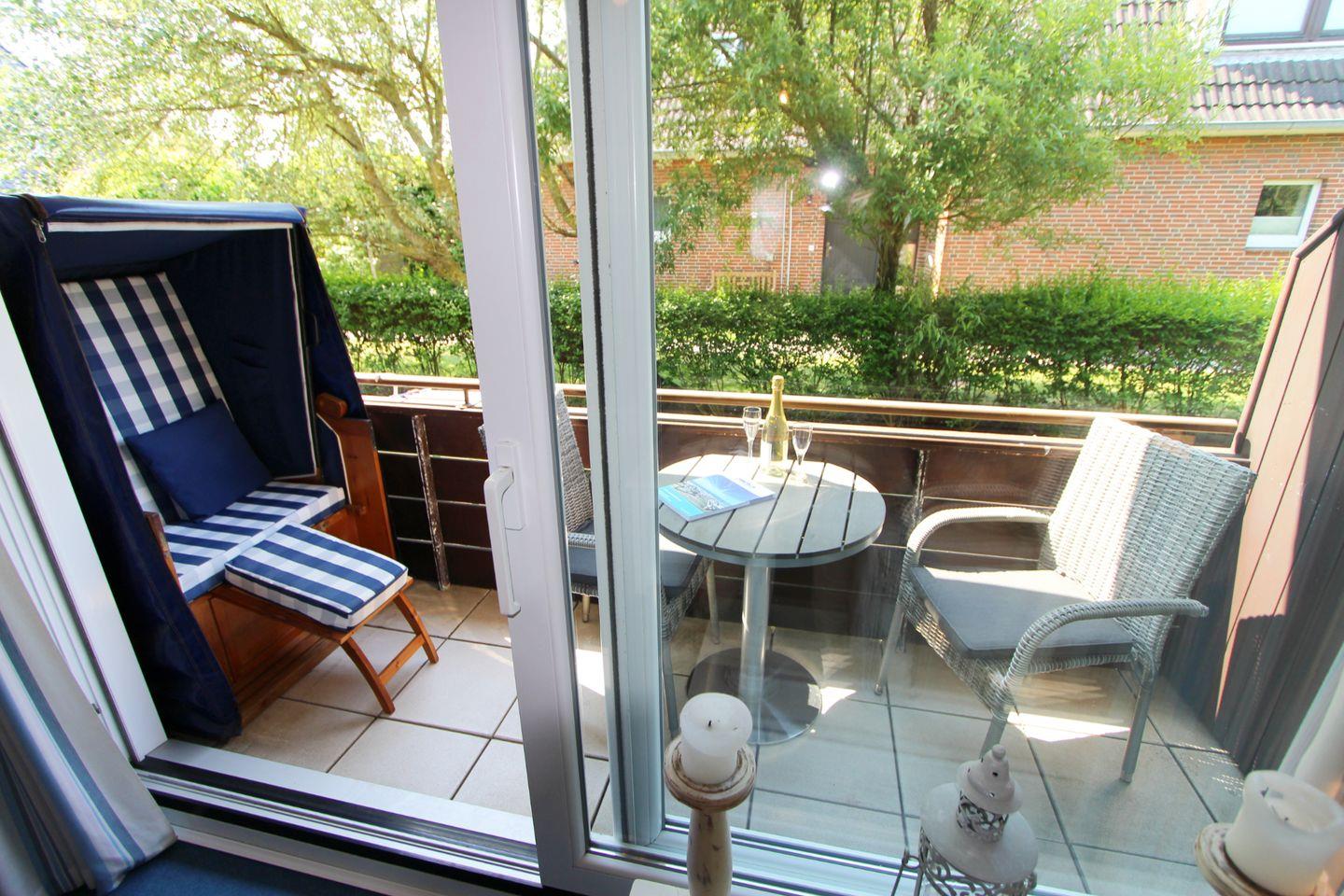 Zudem grenzt an den Wohnbereich ein charmanter Balkon, auf dem Sie besonders an warmen Tagen erholsame Stunden verbringen können. Durch die Süd-Ausrichtung ist die maximale Nutzung der Sylter Sonne gewährleistet.