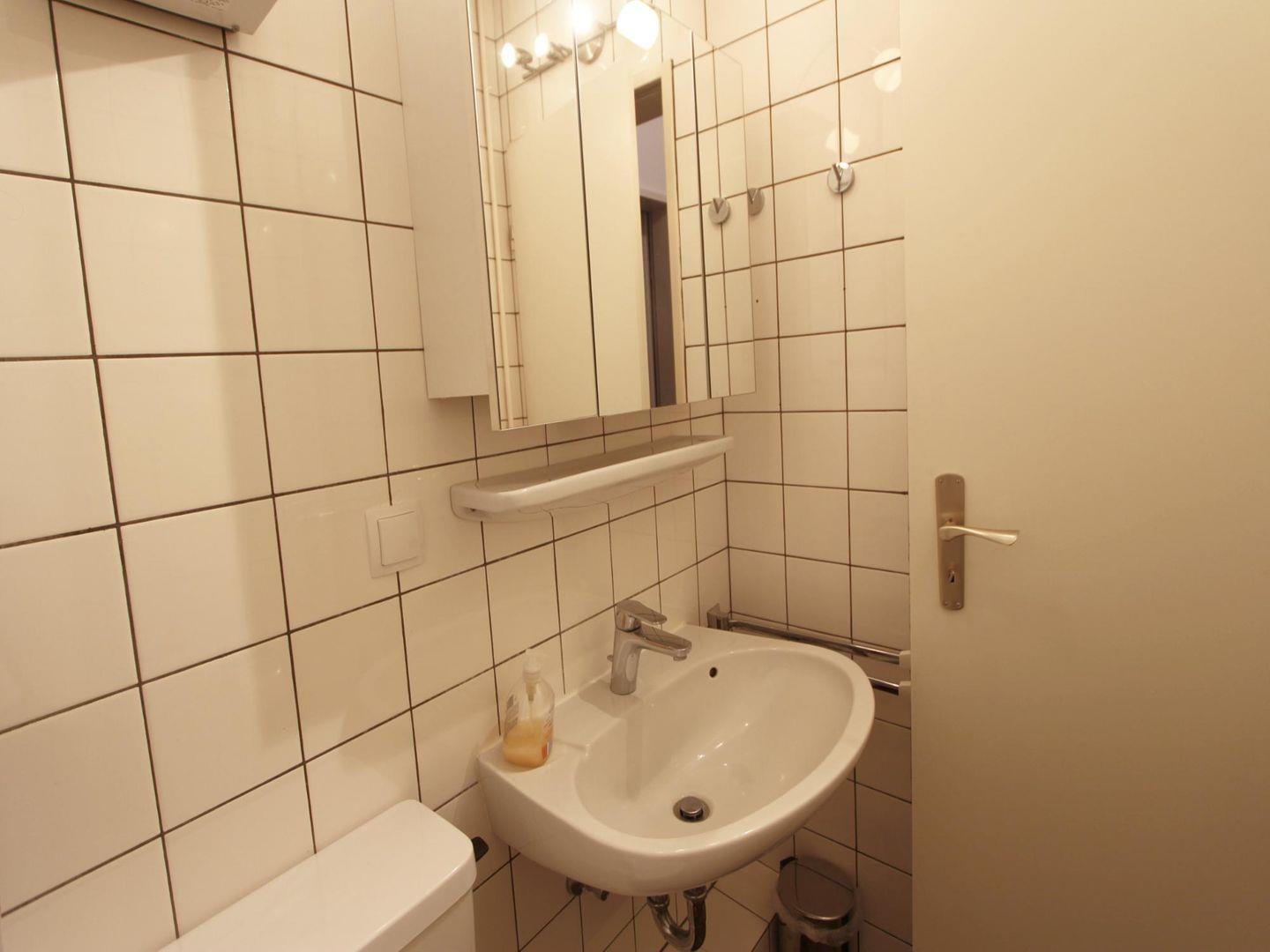 Im Badezimmer stehen Dusche und WC zur Verfügung. Ferner können Sie im Keller von Hauseingang b Waschmaschine und Trockner gegen Gebühr nutzen.