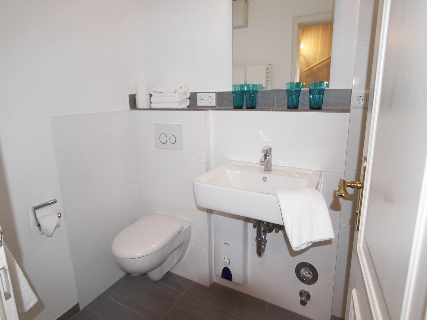 Angrenzend an die beiden Schlafräume liegt das sehr moderne Duschbad mit WC, wo Sie am Abend das Salz von Ihrer Haut waschen können.
