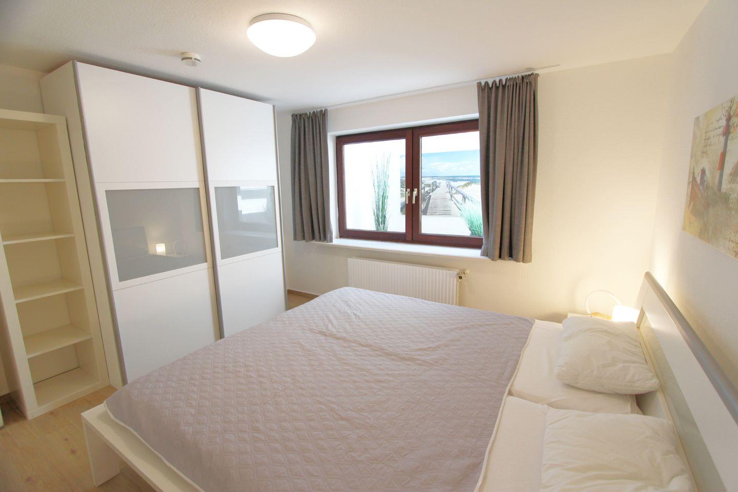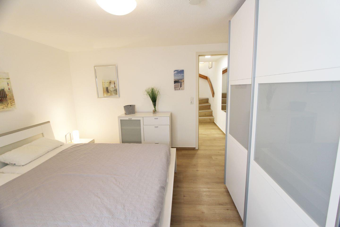 Den Schlafraum mit komfortablem Doppelbett finden Sie im Untergeschoss des Hauses. Durch die helle und moderne Einrichtung kommen Sie hier zu Ruhe und können einen ausgewogenen Schlaf genießen.