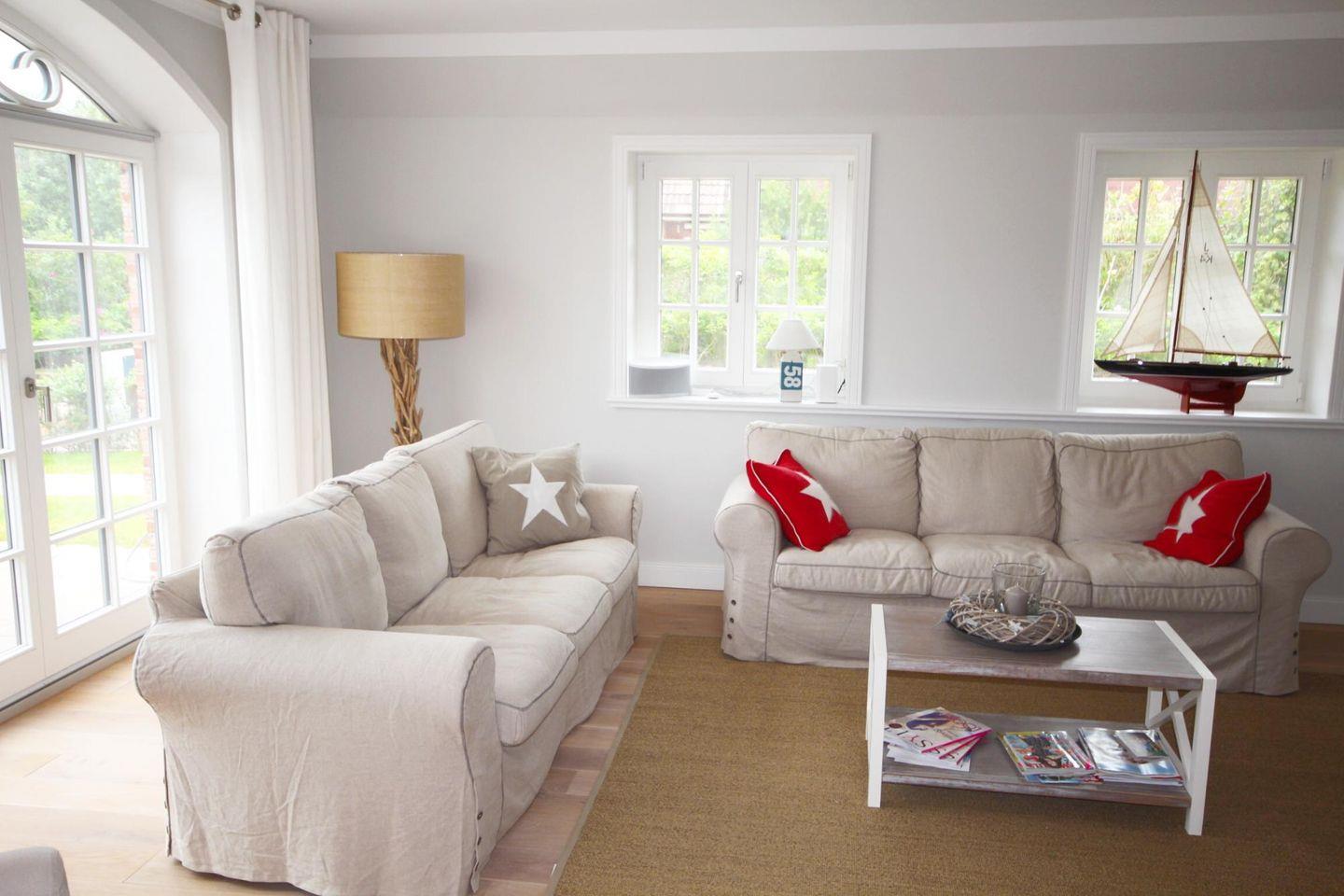 Der weitläufige Garten bietet zwei Terrassen zur ausgiebigen Erholung! Auf der West-Terrasse können Sie gemeinsam Zeit verbringen, da diese mit wertigen Gartensitzmöbeln versehen ist. Auf der Terrasse mit Süd-Ausrichtung können Sie im inseltypischen Strandkorb entspannen und die Seele baumeln lassen.