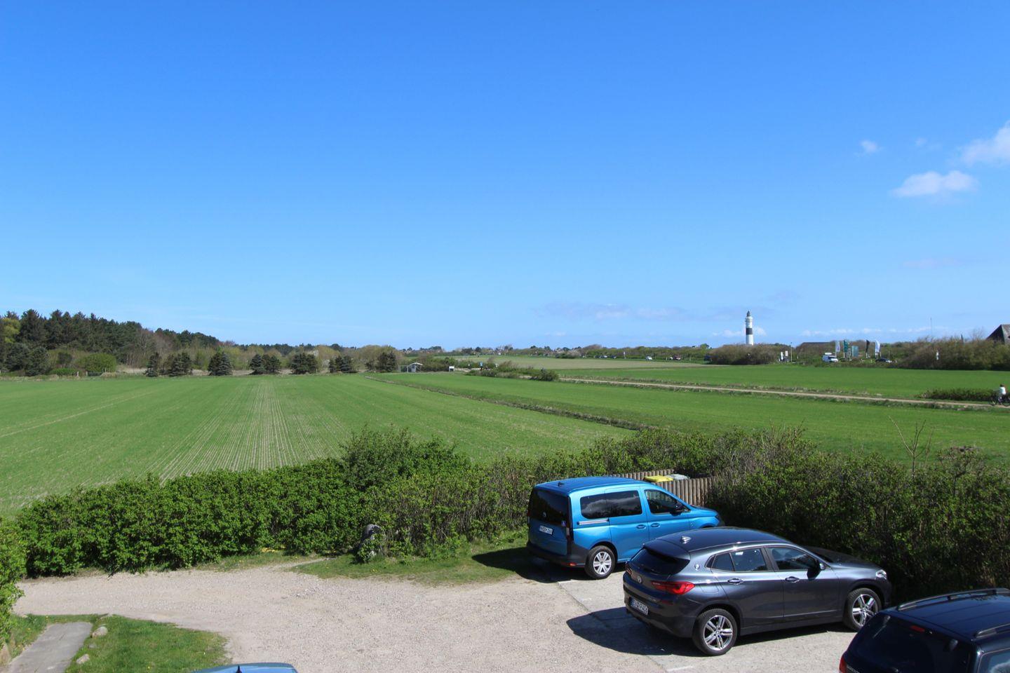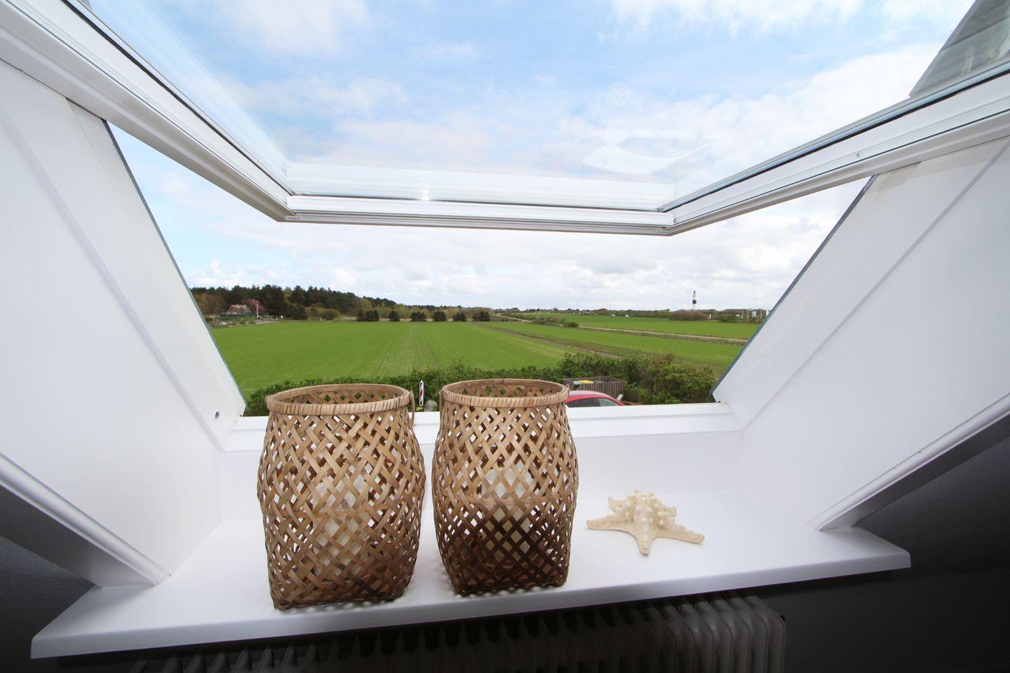 Frisch renoviertes Obergeschoss-Appartement in Wenningstedt mit maritimem Flair und Süd-Balkon, ideal zum Entspannen mit Blick auf Wiesen und Leuchtturm.