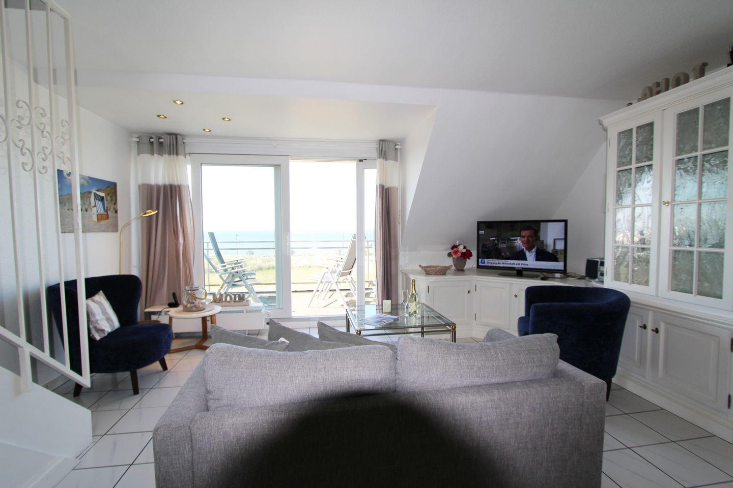 Helle und modern eingerichtete Ferienwohnung auf zwei Ebenen in direkter Strandlage. Für maximalen Verwöhnfaktor sorgen voller Meerblick, West-Balkon und die zentrale Lage. Perfekt für den Familienurlaub.