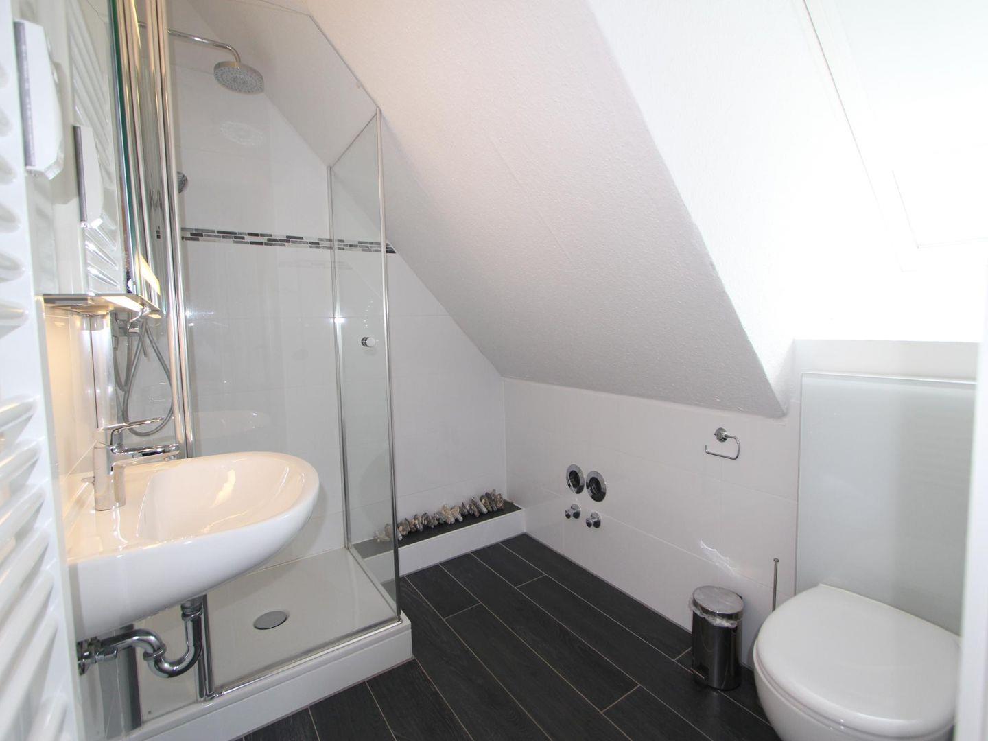 In den zwei Duschbädern mit WC können Sie sich bei einer angenehmen Dusche entspannen. Eines befindet sich im Obergeschoss, das zweite im Dachgeschoss. Außerdem stehen Ihnen eine Münz-Waschmaschine und ein Münz-Trockner im Mieterkeller zur Verfügung.