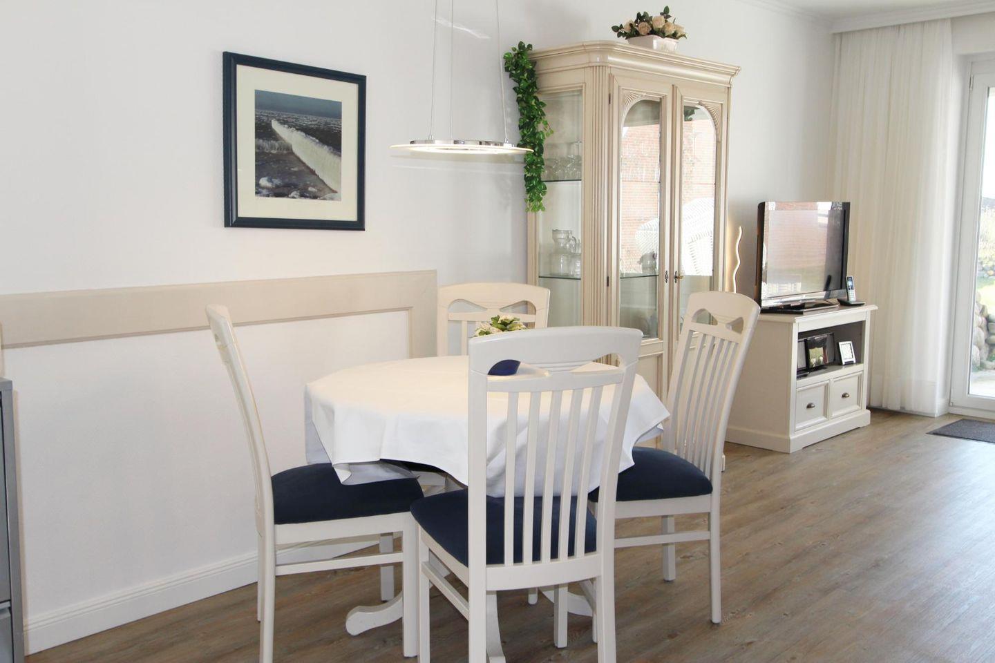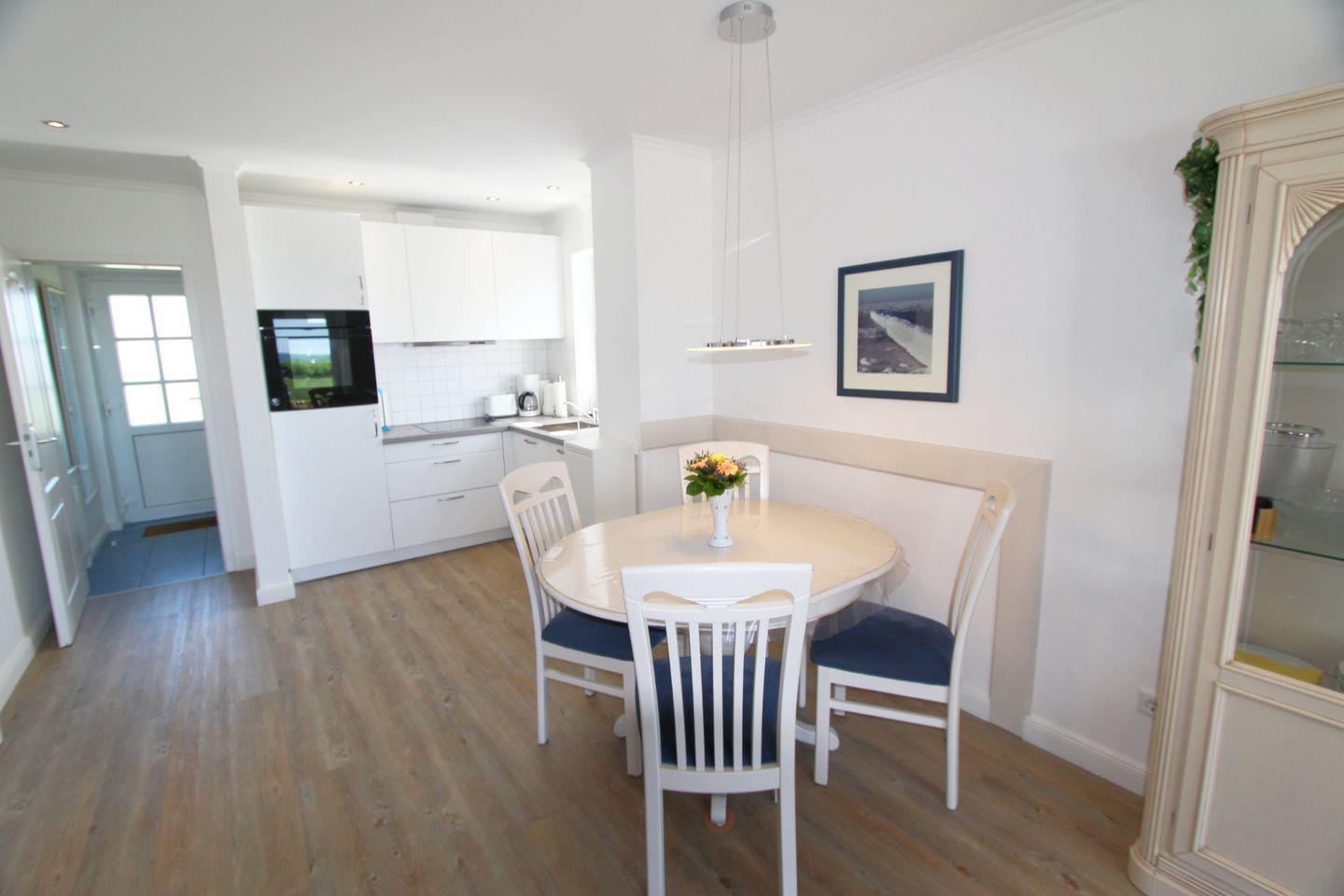 Der Essbereich befindet sich im großen Wohnraum im Erdgeschoss und bietet Platz für vier Personen. Die offene Küche bietet ausreichend Platz und Arbeitsflächen, um gemeinsam zu kochen.