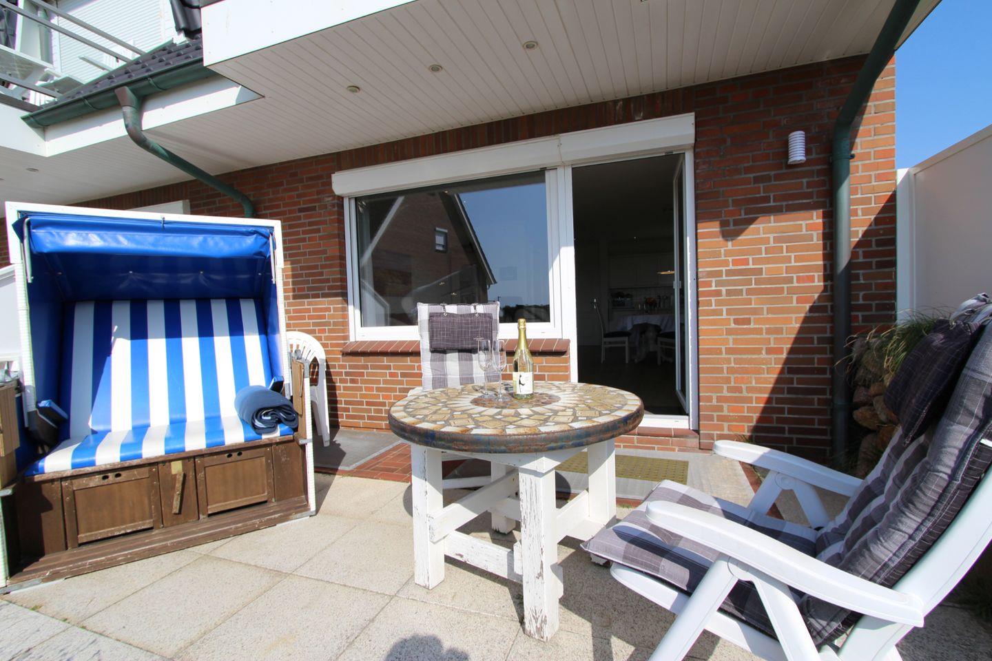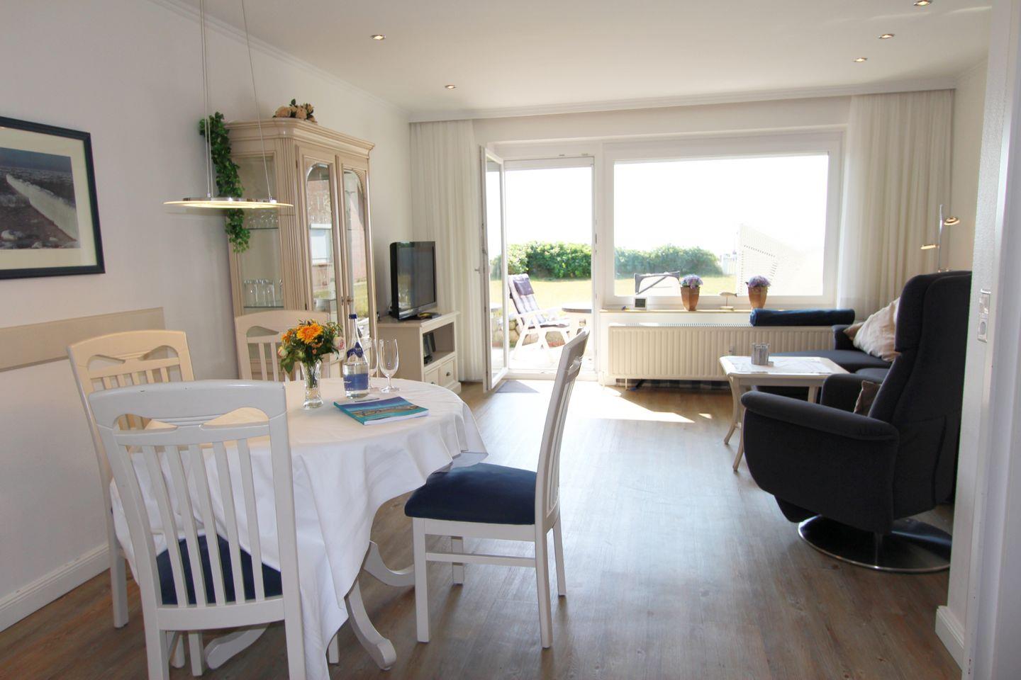 Hell eingerichtete Ferienwohnung mit Meerblick an der Wenningstedter Promenade, inklusive Sauna und Terrasse.