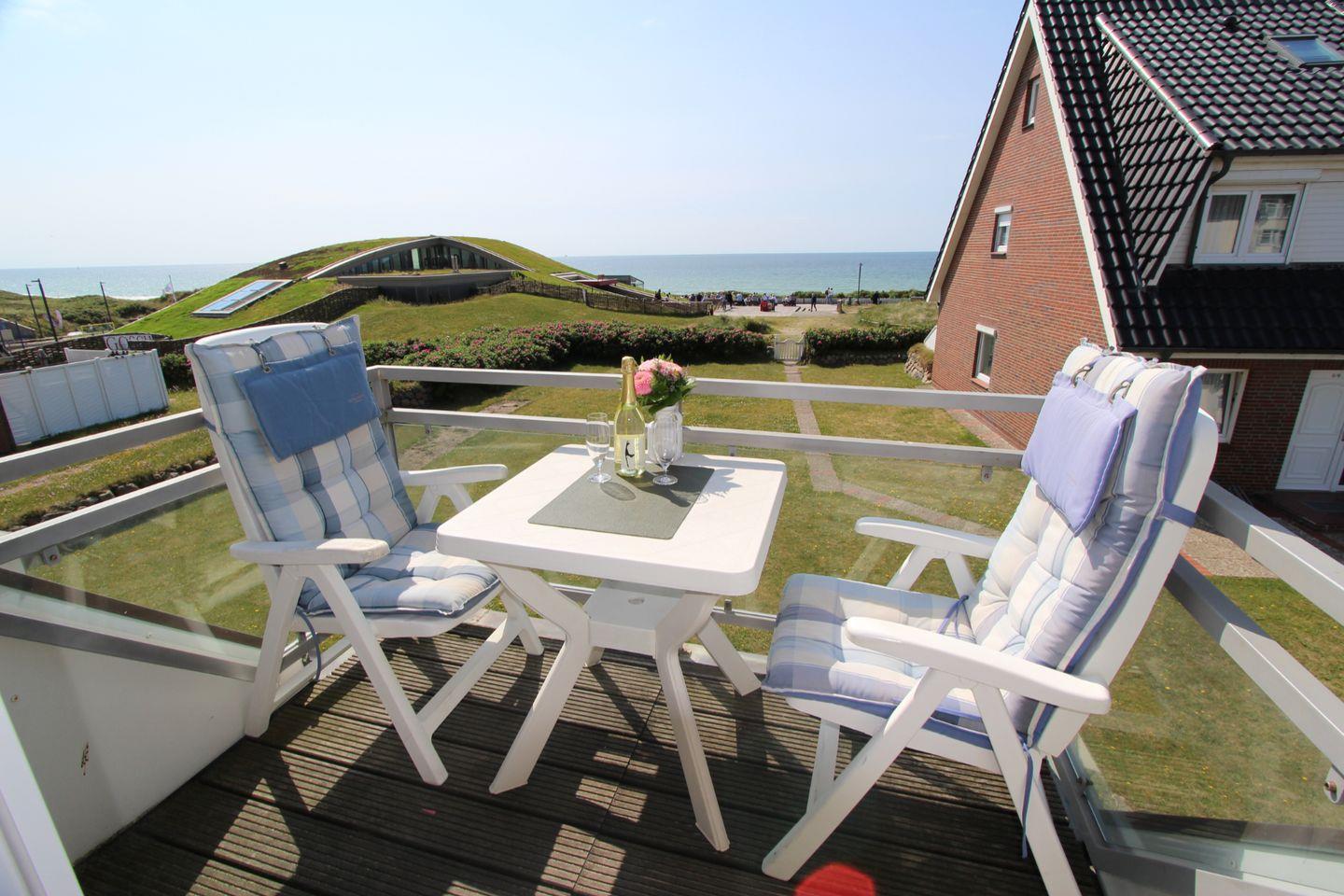 Genießen Sie auf dem West-Balkon den Meerblick! Ob Sonne oder „Sylt-Wetter“, hier sind Sie dem Meer ganz nah.