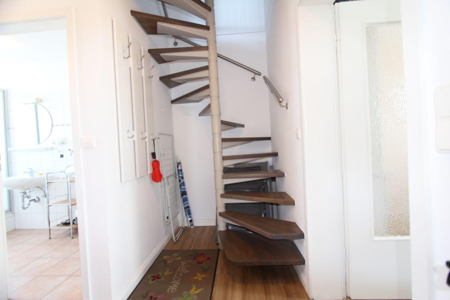 Dieses Ferienappartement verfügt über zwei separate Schlafräume. Im Schlafzimmer auf der Wohnebene nächtigen Sie in zwei komfortablen Einzelbetten. Der Schlafraum im Dachgeschoss, der über eine Wendeltreppe zu erreichen ist, bietet ein Doppelbett und fantastischen Ausblick auf die Nordsee. Ein einmaliges Erlebnis morgens aufzustehen und direkt einen Blick auf die blaue See zu werfen!