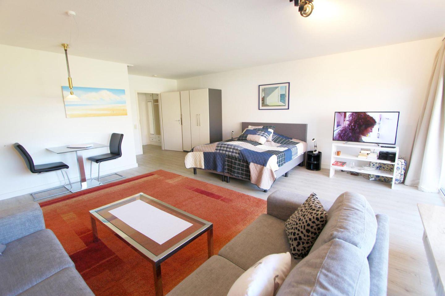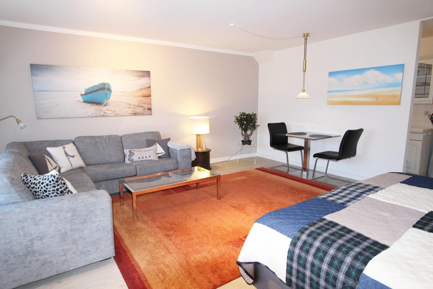 Großes Ein-Raum-Appartement im Erdgeschoss mit schönem Gartenstück. Genießen Sie Ihren Urlaub in Wenningstedt in dieser ideal gelegenen Ferienwohnung mit komfortablem Boxspringbett und großem Wohnbereich. Hier ist ein toller Urlaub zu zweit garantiert! Haustiere sind hier herzlich willkommen.