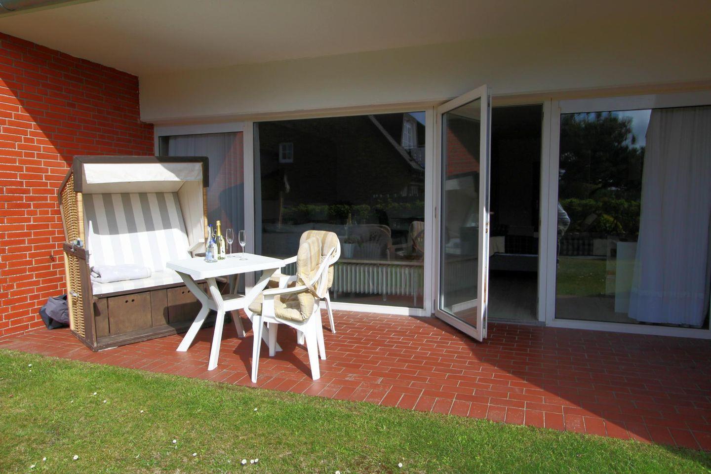 Großzügiges Ein-Raum-Appartement mit eigenem Gartenstück und Terrasse in Wenningstedt, ideal für einen erholsamen Urlaub zu zweit.