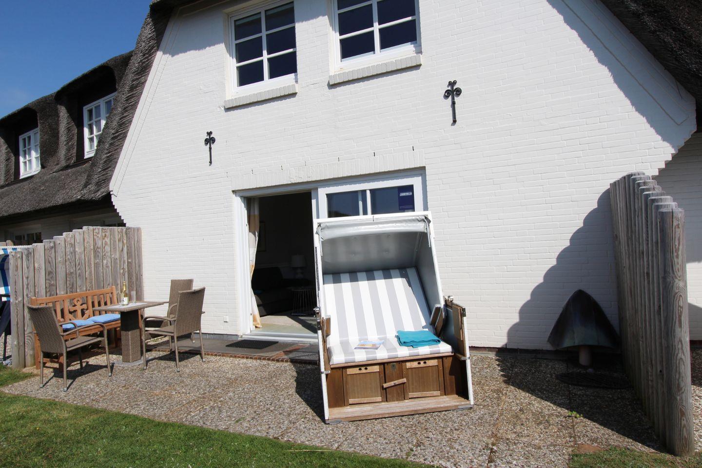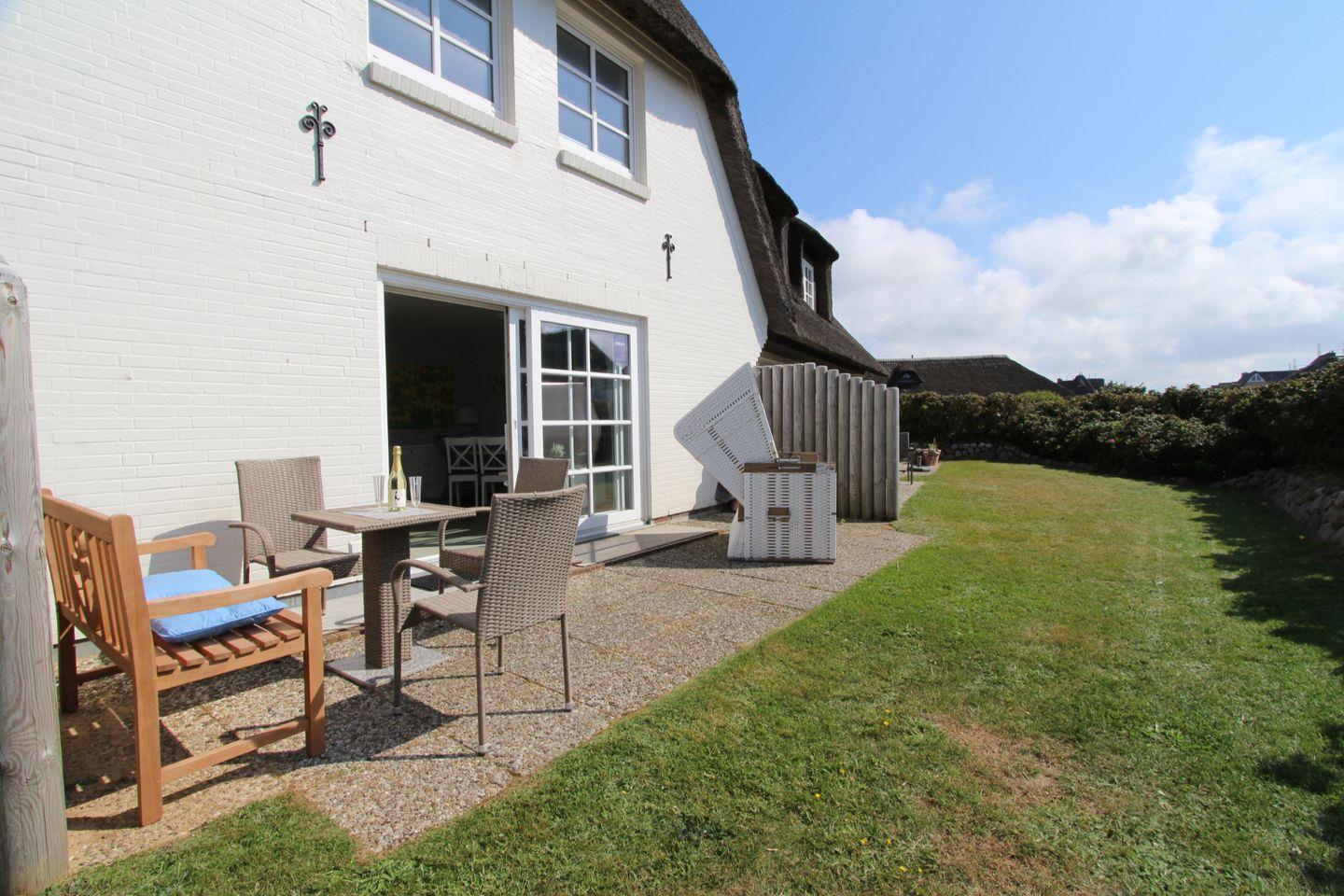 Genießen Sie auf der Süd-Terrasse die Sonne. Hier können Sie mit einem ausgiebigen Frühstück unter freiem Himmel optimal in einen neuen Urlaubstag auf Sylt starten.