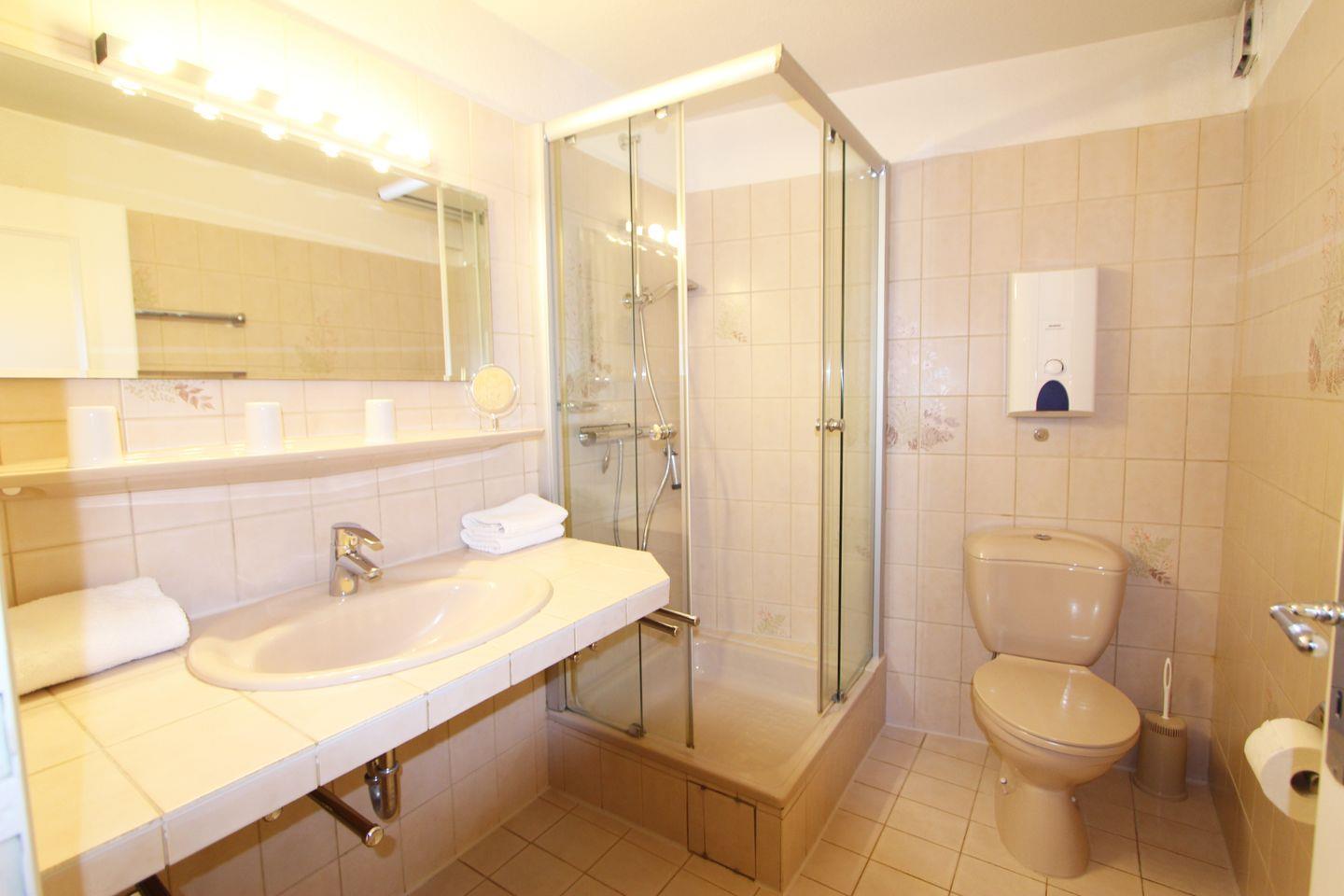Das Bad versprüht den Charme alter Tage und bietet eine hochwertige Glas-Duschkabine und WC. Außerdem stehen Ihnen eine Münz-Waschmaschine und ein Münz-Trockner im Mieterkeller zur Verfügung.