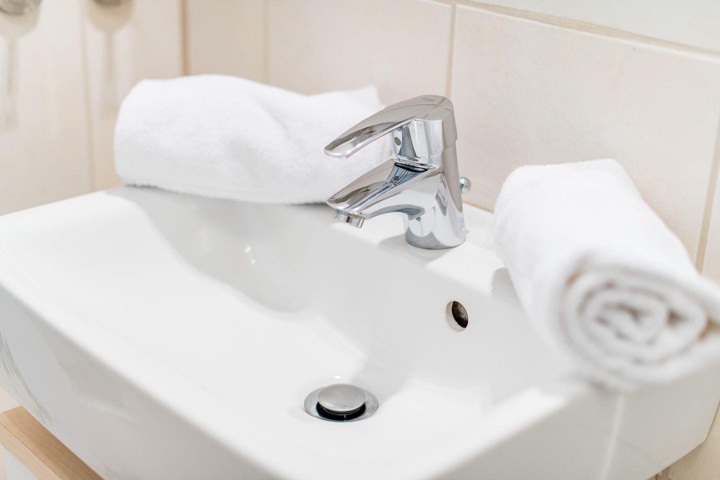 Das moderne Badezimmer ist mit einer Dusche und einem WC ausgestattet. Die funktionale Gestaltung bietet Ihnen den nötigen Komfort für Ihren Aufenthalt.