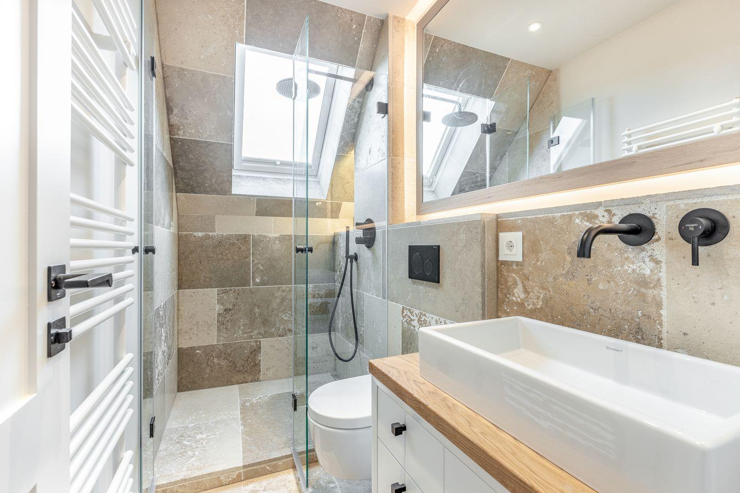 Die individuell vom Tischler gefertigte Designküche überzeugt durch Funktionalität und hochwertige Materialien – perfekt für genussvolle Abende in privater Atmosphäre. Veredelte Wandflächen mit Malervlies und ausgewählten Holzpaneelen unterstreichen den modernen Charakter der Wohnung. Hochwertige GIRA-Glasschalter, integrierte Radios und durchdachte Lichtakzente sorgen für ein stimmiges, luxuriöses Wohngefühl.