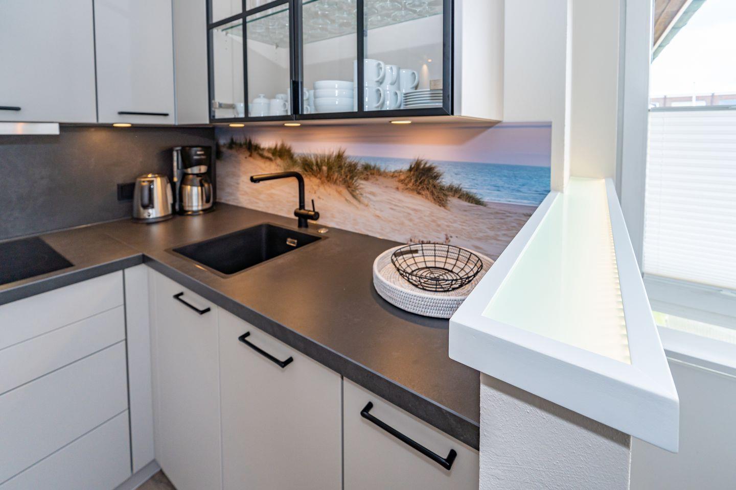 Die Ferienwohnung Strandperle begrüßt sie in traumhafter Lage am Wenningstedter Dorfteich und dennoch zentral im Ortskern, unweit von diversen Geschäften. Die Ferienwohnung befindet sich im ersten Obergeschoss und ist mit dem Aufzug oder der Treppe zu erreichen. Es erwartet Sie ein heller Wohn- und Essbereich mit offener voll ausgestatteter Küche (Backofen, Gefrierfach, Toaster, Kaffeefiltermaschine, Nespressomaschine) , Essecke, Design Polstermöbeln und Smart TV. Von hier gelangen Sie auf den Westbalkon mit seitlichen Blick auf den Wenningstedter Dorfteich. Das Schlafzimmer mit hochwertigem Einbau Kleiderschrank, einem weiteren Smart TV, Doppelbett und weiterem Zugang zum Balkon verspricht erholsame Nächte. Außerdem verfügt die Unterkunft über ein Tageslicht Badezimmer mit Regendusche, Waschtisch, Handtuchtrockner und WC.